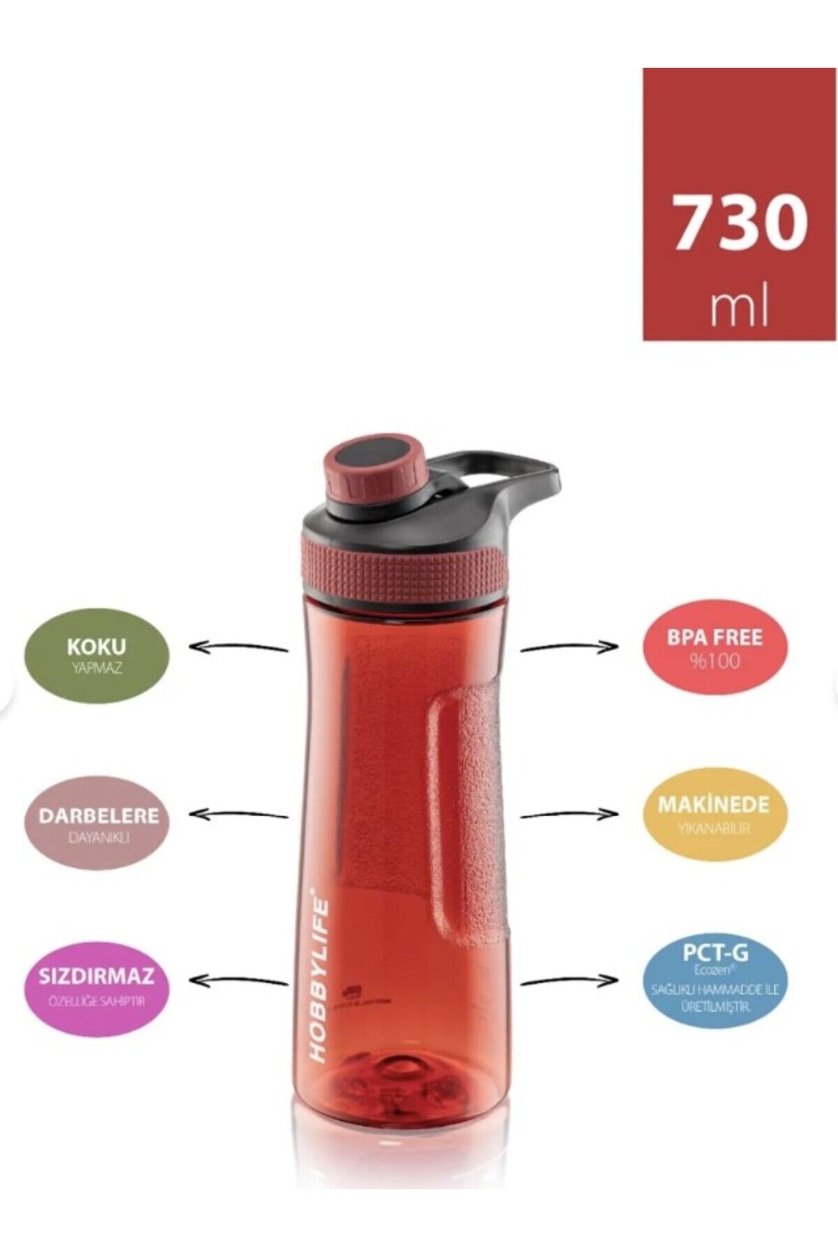 1 Adet 730ml Şeffaf Spor Okul Ofis Su Matarası Suluk (5PP EN GÜVENİRLİK PLASTİK SINIFI)