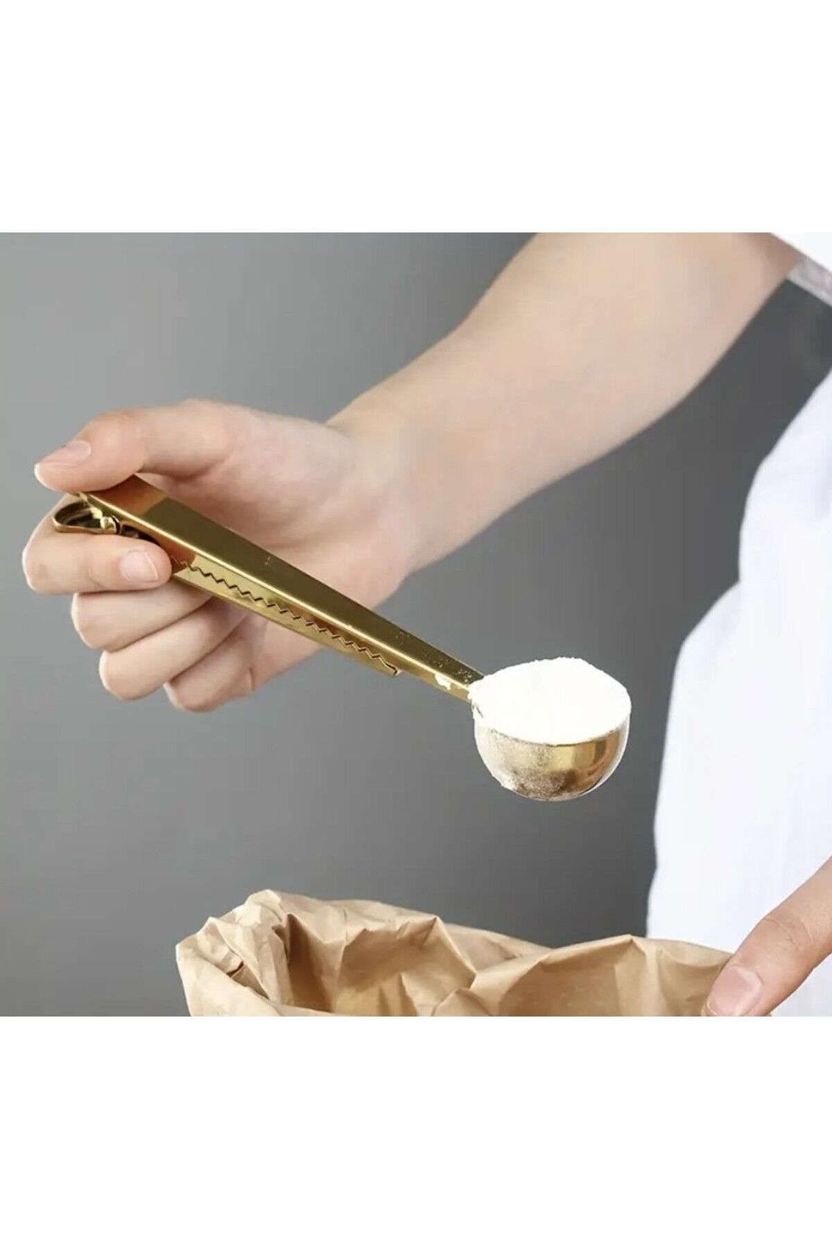 1 Adet Mandallı Kahve Ölçü Kaşığı Gold Çok Fonksiyonlu Paslanmaz Çelik Kaşık