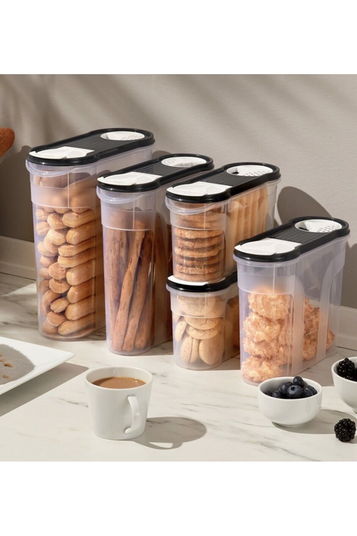 - Geniş hacmiyle 2150 mL kapasitesine sahip, gıda saklamak için ideal bir çözüm sunar.; - Dayanıklı plastik malzemeden üretilmiş olup, uzun süreli kullanım için uygundur.; Hava geçirmez tasarımı sayesinde yiyeceklerinizin tazeliğini korur ve bozulmaya karşı etkin bir koruma sağlar.; - Kolay temizlenebilir yüzeyi ile hijyenik bir saklama imkanı sunar; böylece mutfakta hijyen standartlarını yükseltir.; - Çok amaçlı kullanım özelliği ile farklı gıda grupları için idealdir; pirinçten makarnaya kadar her türlü erzak için uygundur.;