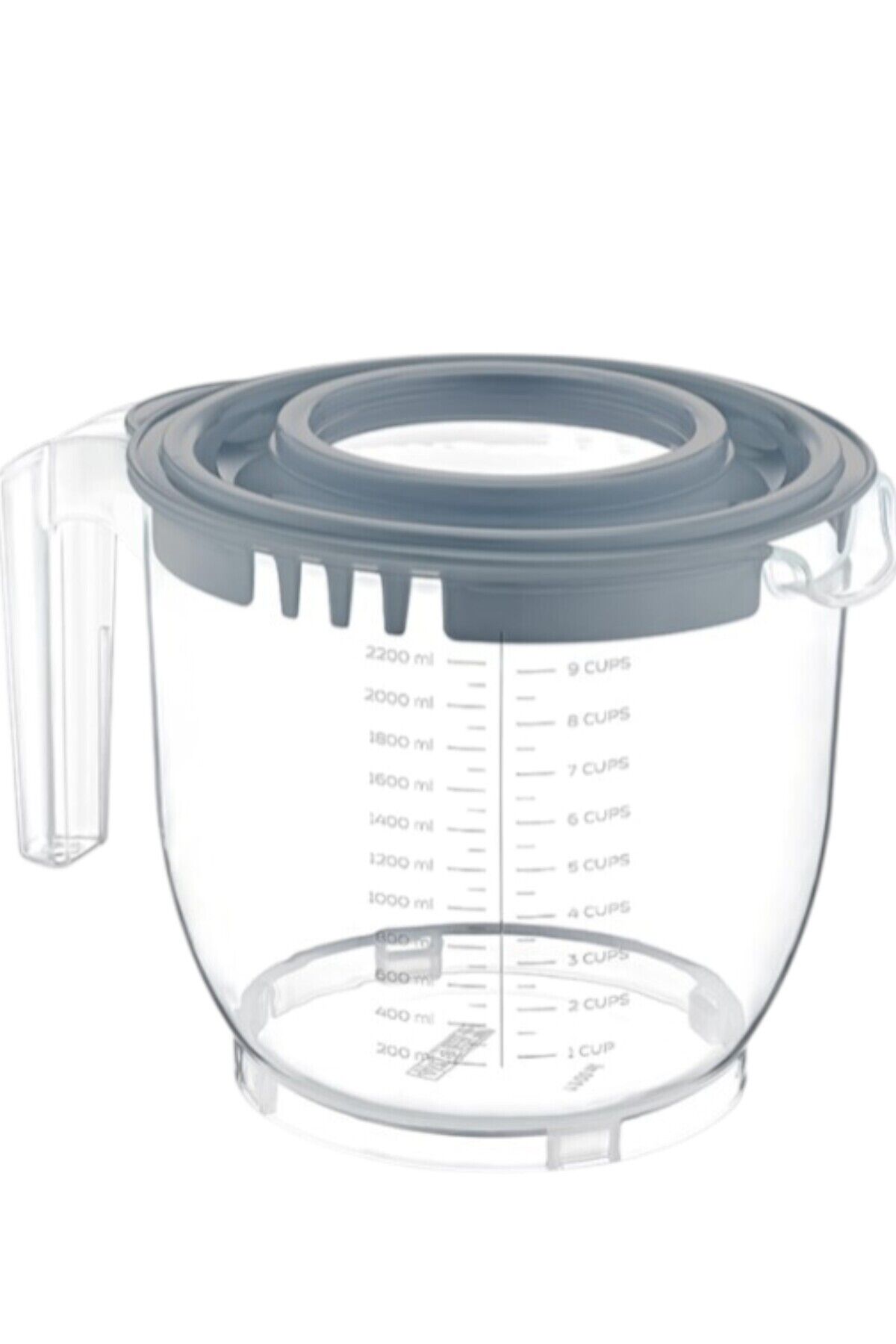 - Geniş kapasitesiyle 2200 ml hacme sahip, büyük miktarlarda malzemeleri kolayca karıştırmanızı sağlar.; - Kapağı sayesinde içeriği dış etkenlerden korur ve temizliği pratiktir; böylece hijyenik bir kullanım sunar.; - BPA içermez özelliği ile sağlığınızı düşünerek tasarlanmıştır; güvenle gıda hazırlıklarınızda kullanabilirsiniz.; - Ölçü kabı olarak da kullanılabilen bu ürün, mutfakta ihtiyacınıza göre farklı ölçülerde malzeme eklemenize olanak tanır.; - Sağlıklı ve pratik tasarımıyla mutfak işlerinizi daha keyifli hale getirirken zamandan tasarruf edersiniz.;
