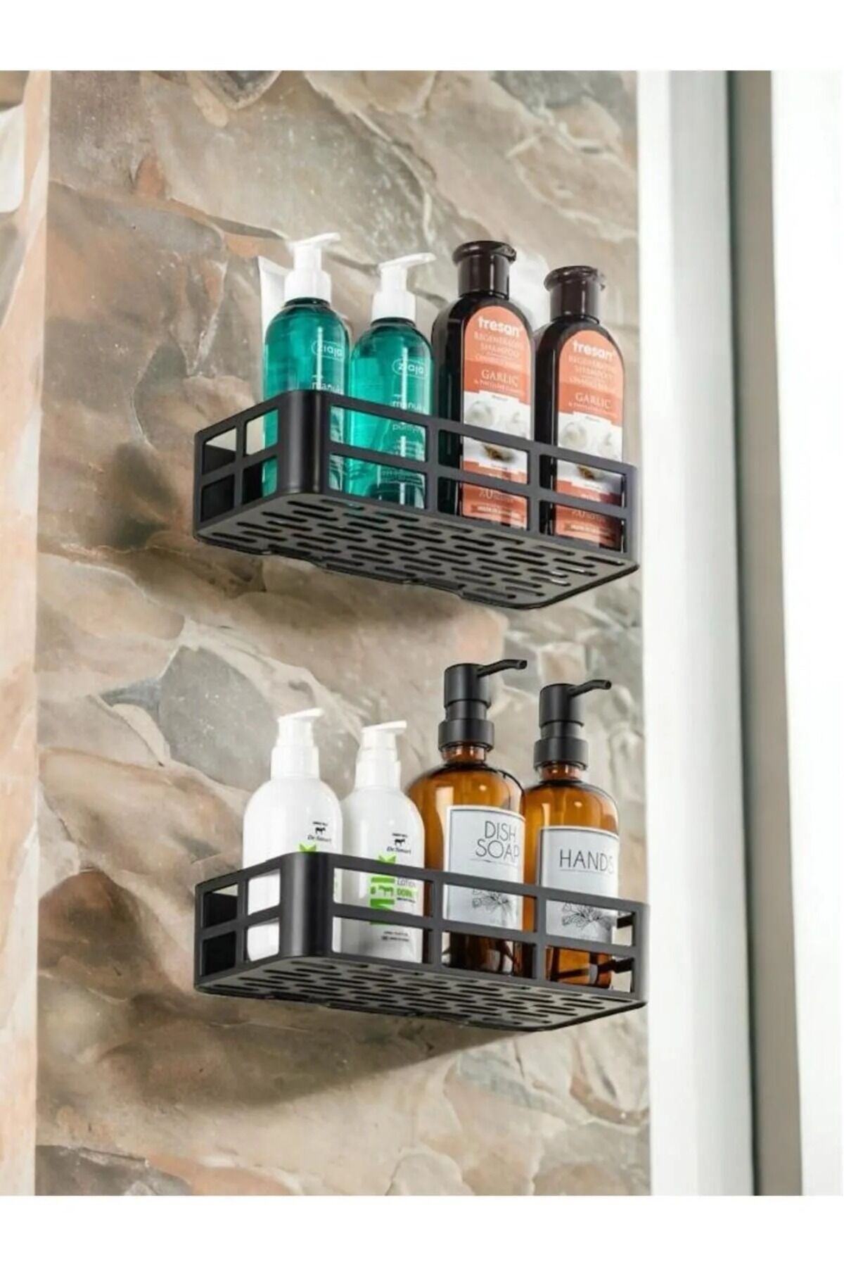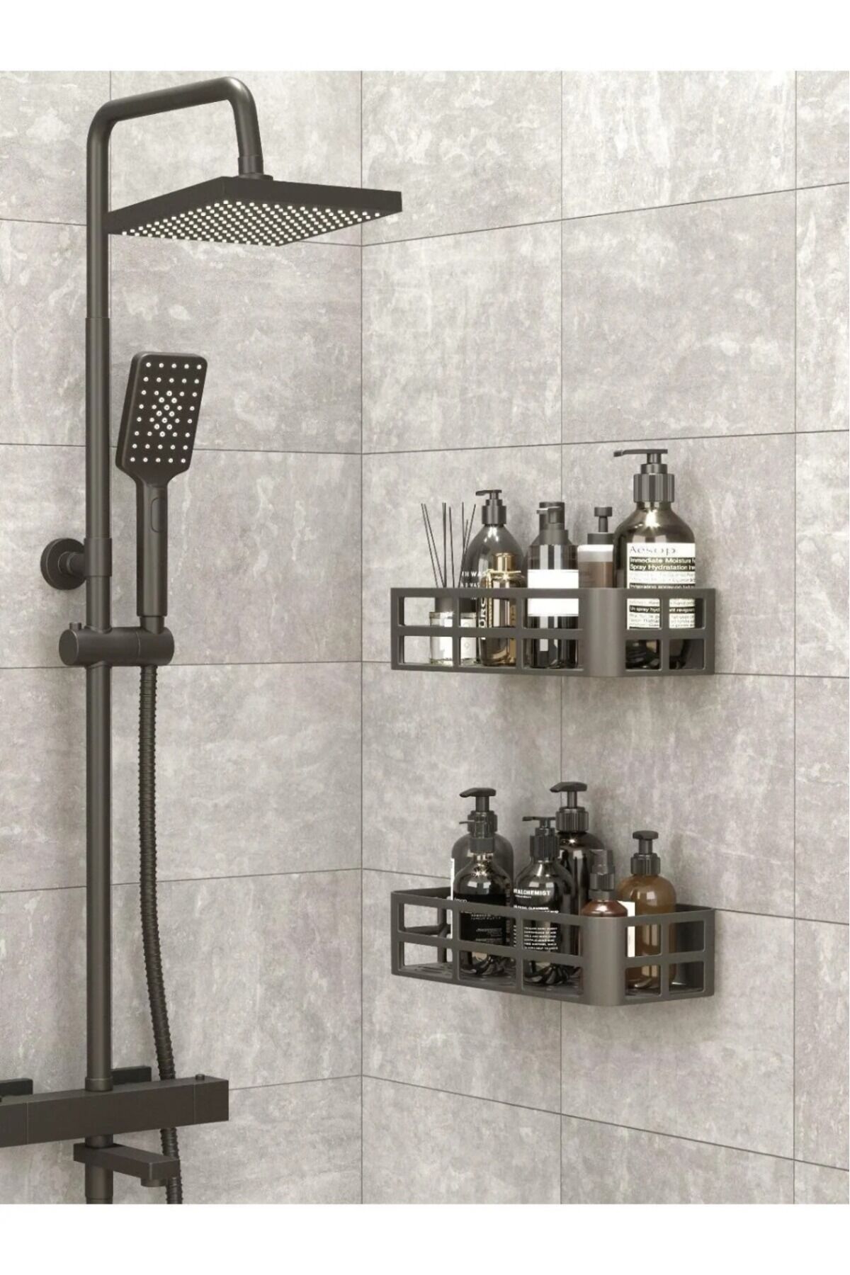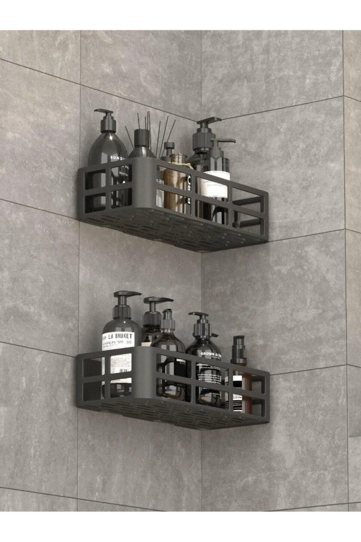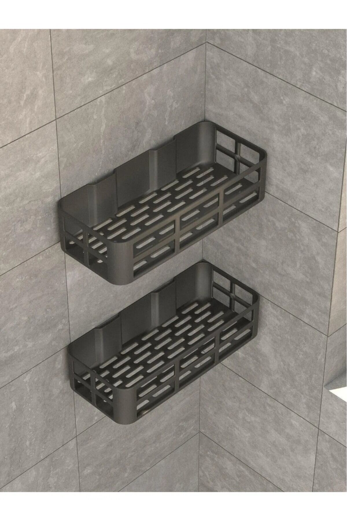 2'li Yapışkanlı Banyo Rafı Şampuanlık Sabunluk Set Duş Aksesuar