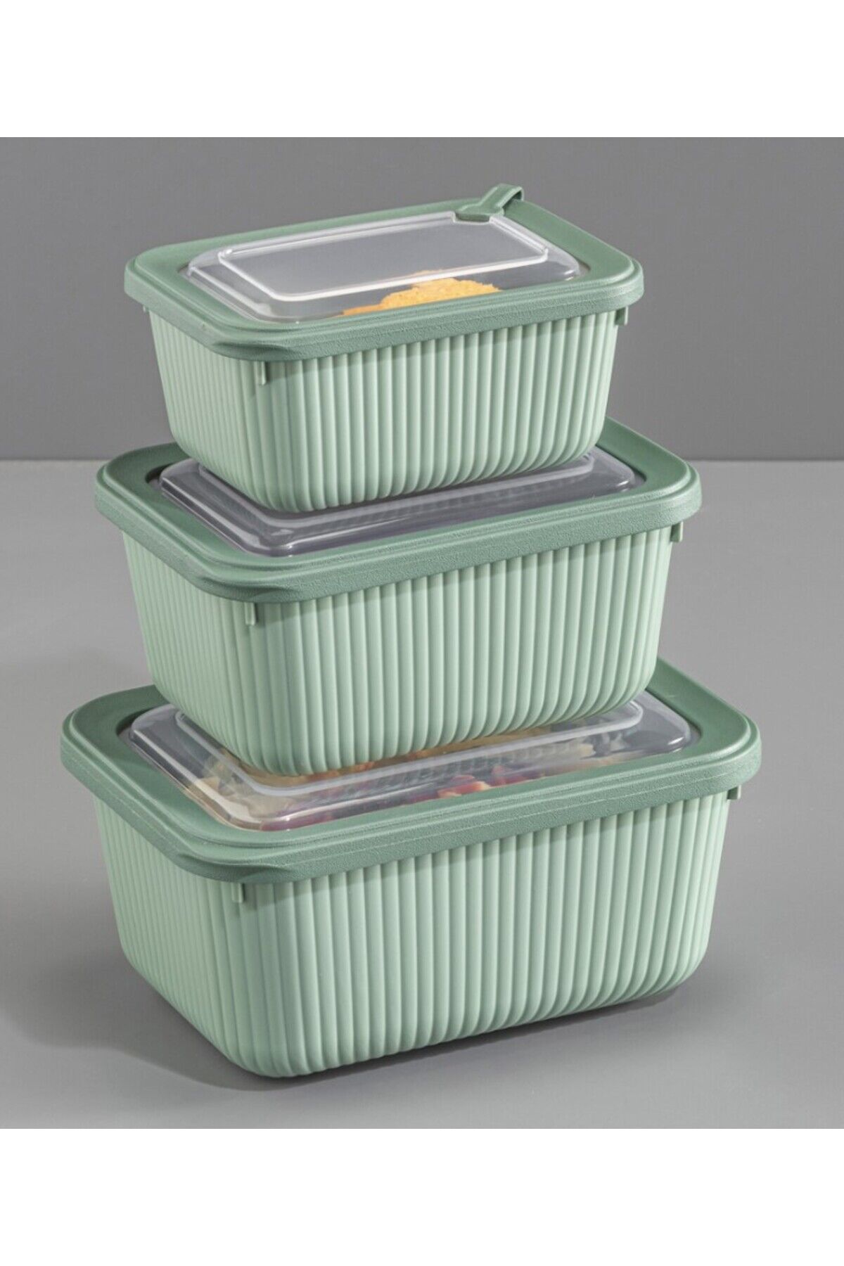 3 Parça Micro Line Dikdörtgen Saklama Seti ( 600-1100-1800 ml )