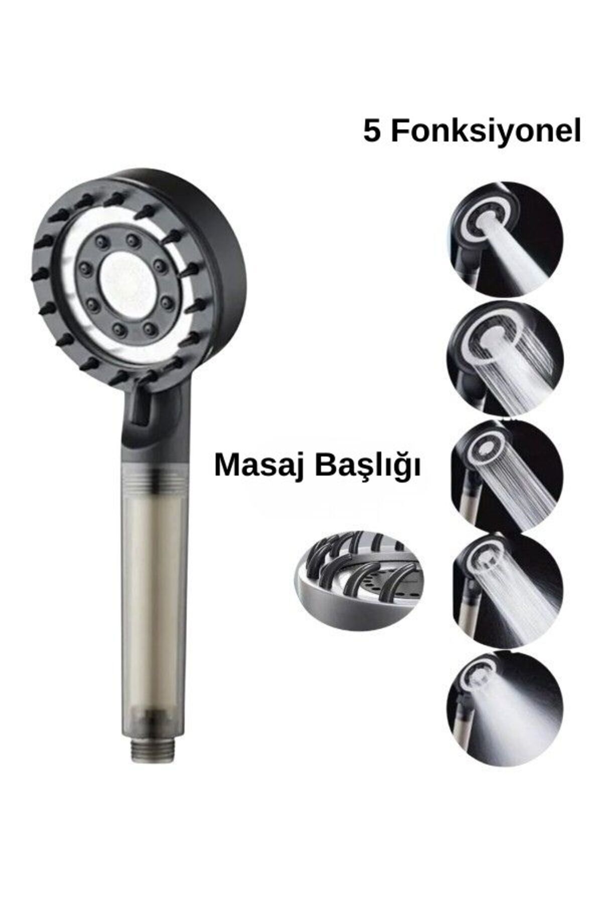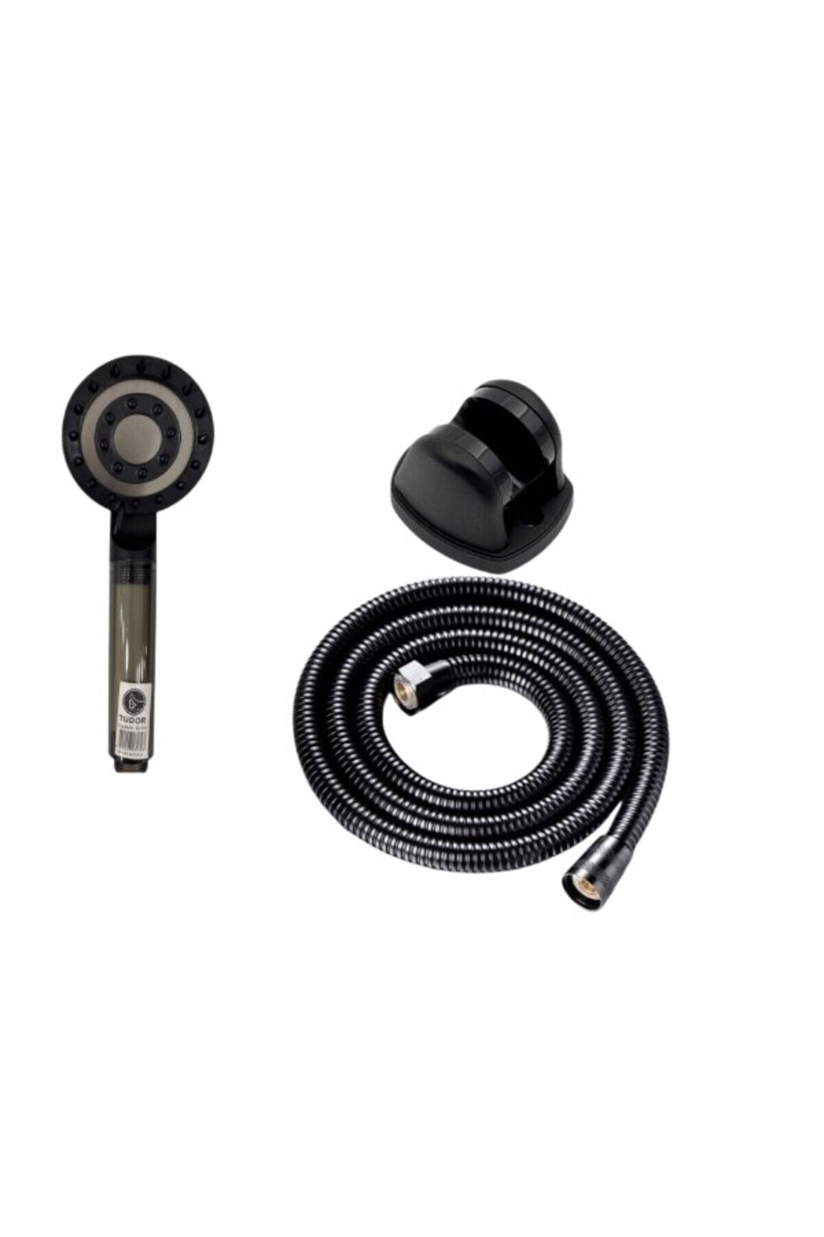 3'lü Set 5 Kademeli Filtreli Masajlı Siyah Duş Başlığı + 150 cm Duş Hortumu + Askı Aparatı