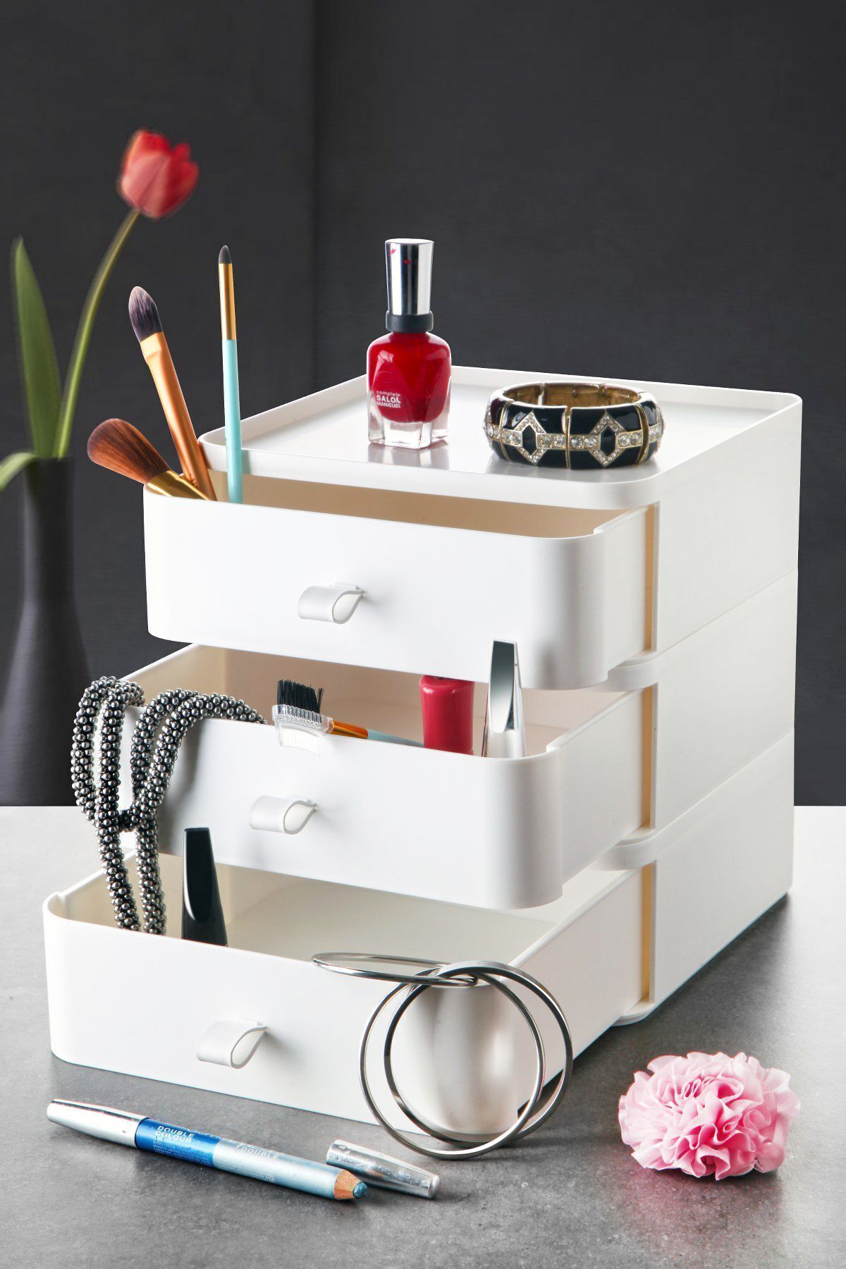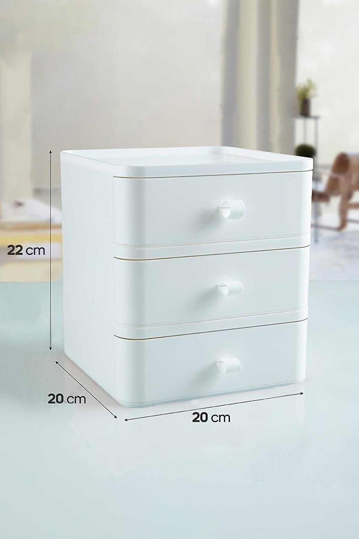 3'lü Takı Makyaj Ve Kozmetik Düzenleyici Çekmece Çok Amaçlı Masaüstü Organizer Beyaz