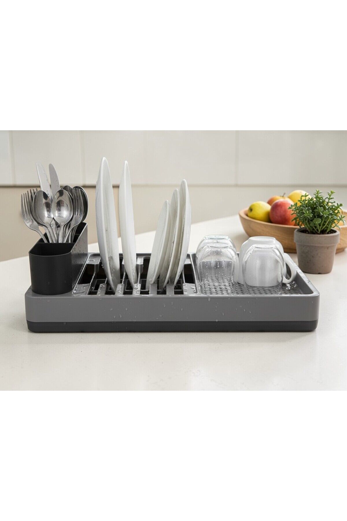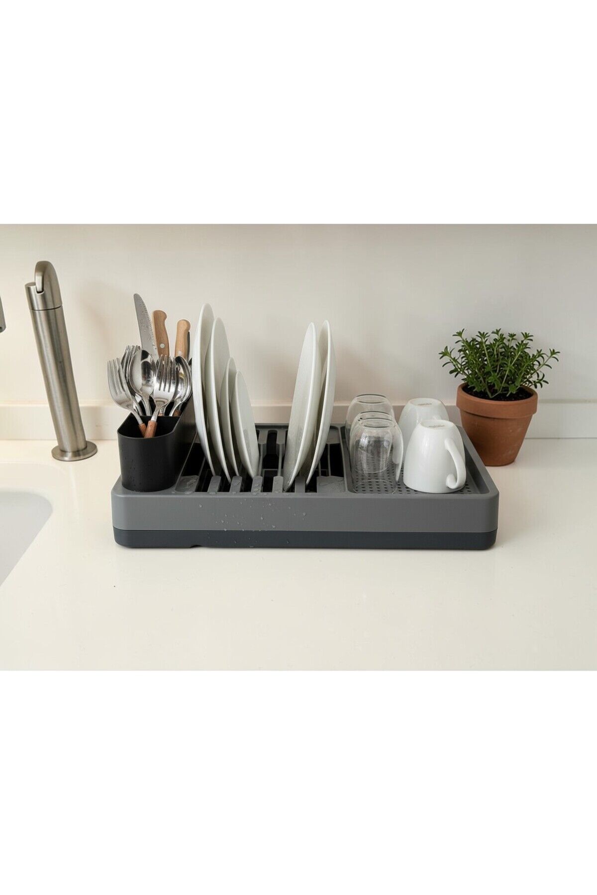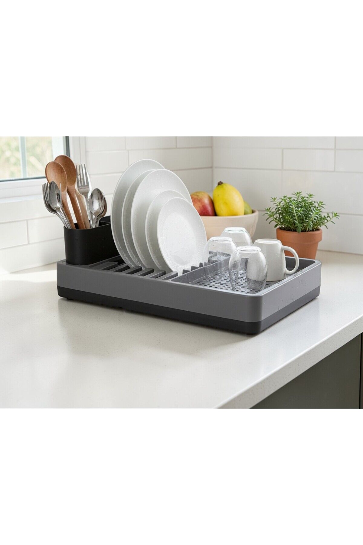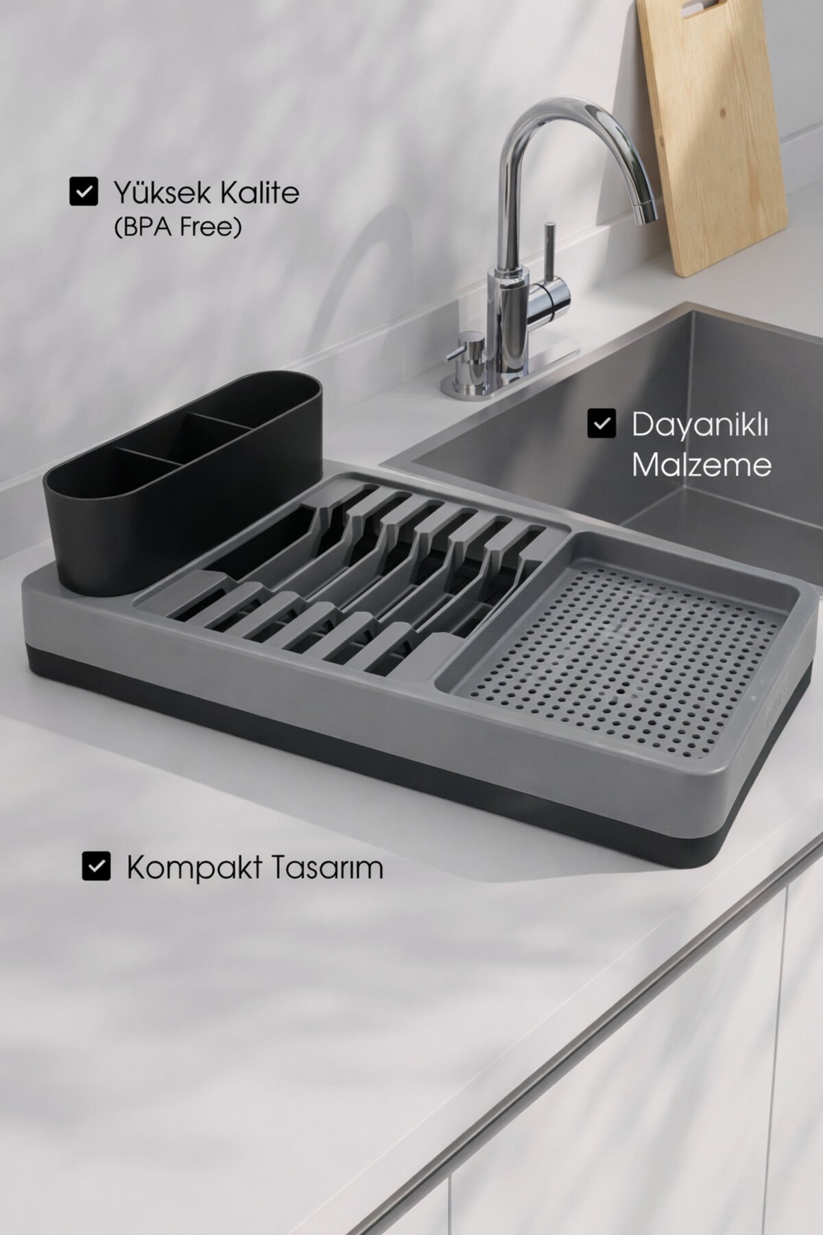 Bulaşık Kurutma Sepeti ve Düzenleyici, Su Tahliyeli Bölme, Modern Ve Pratik Kirli Beyaz