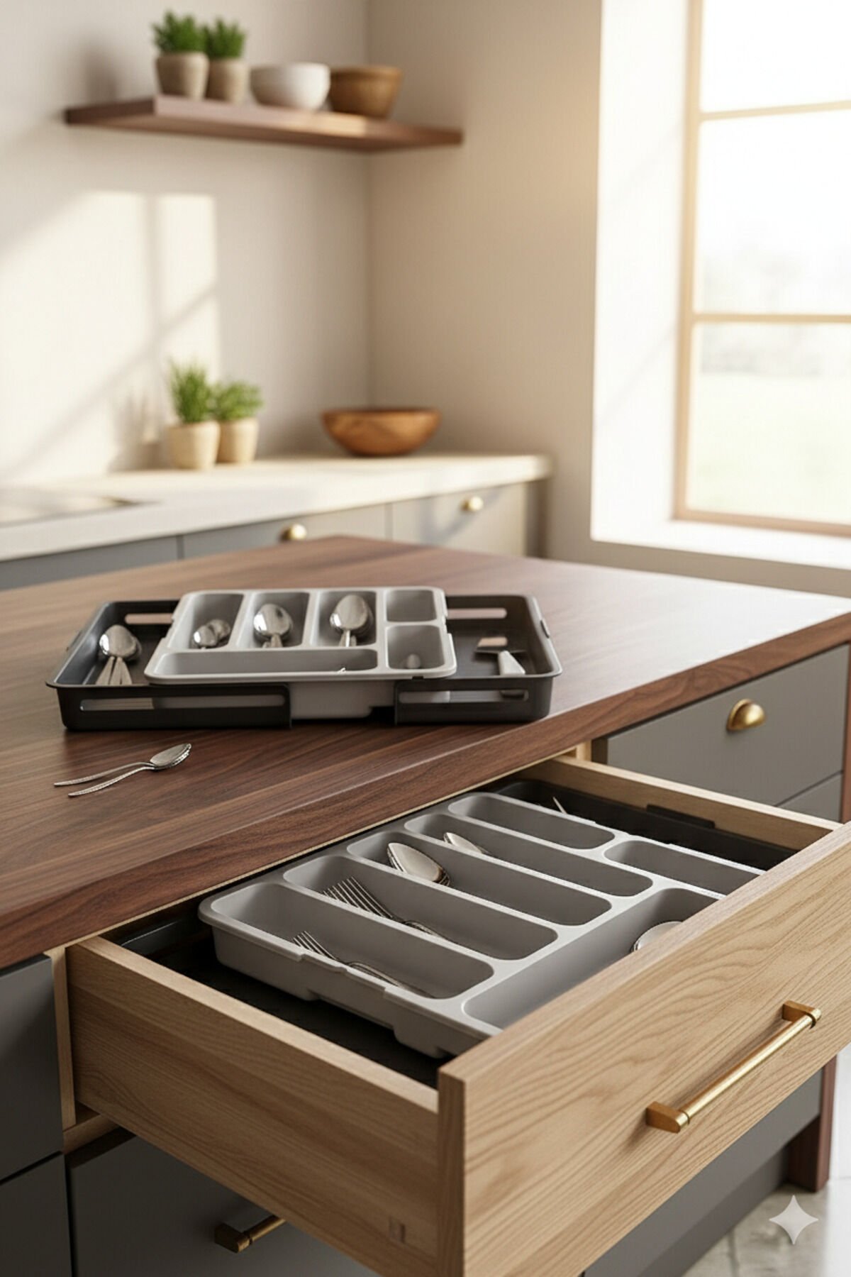 Çekmece İçi Kaşıklık Organizer – Çift Taraflı Uzayabilen Pratik Düzenleyici | Dayanıklı Malzeme