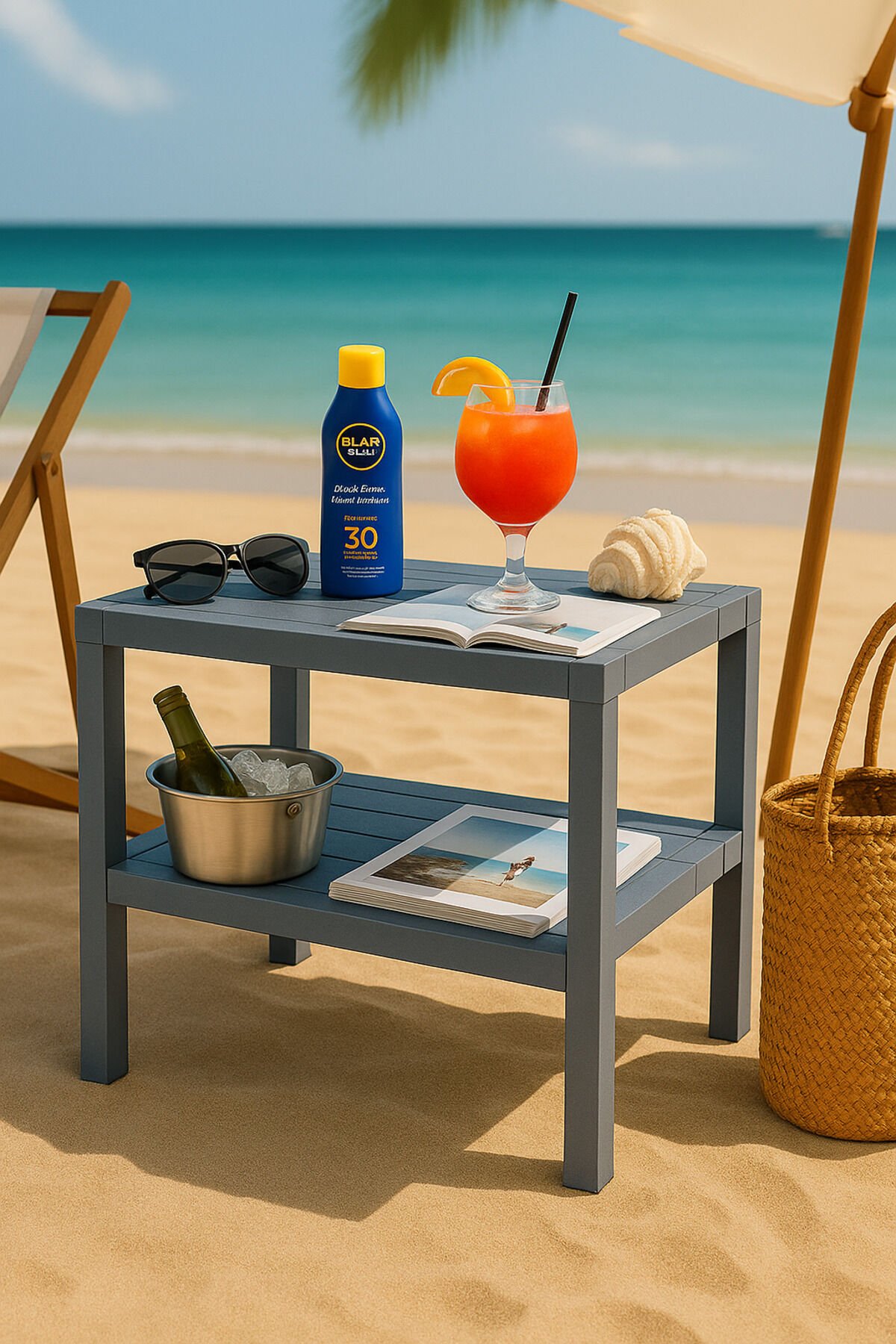 Havuz Plaj Sehpası – 2 Katlı Çok Amaçlı Organizer | Balkon, Bahçe, Banyo Ve Mutfak Için Raf Ünitesi