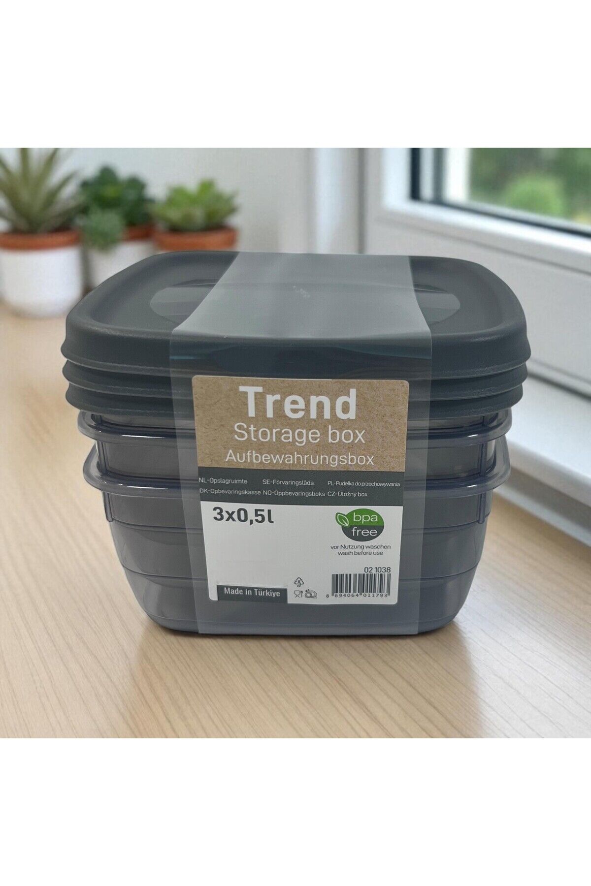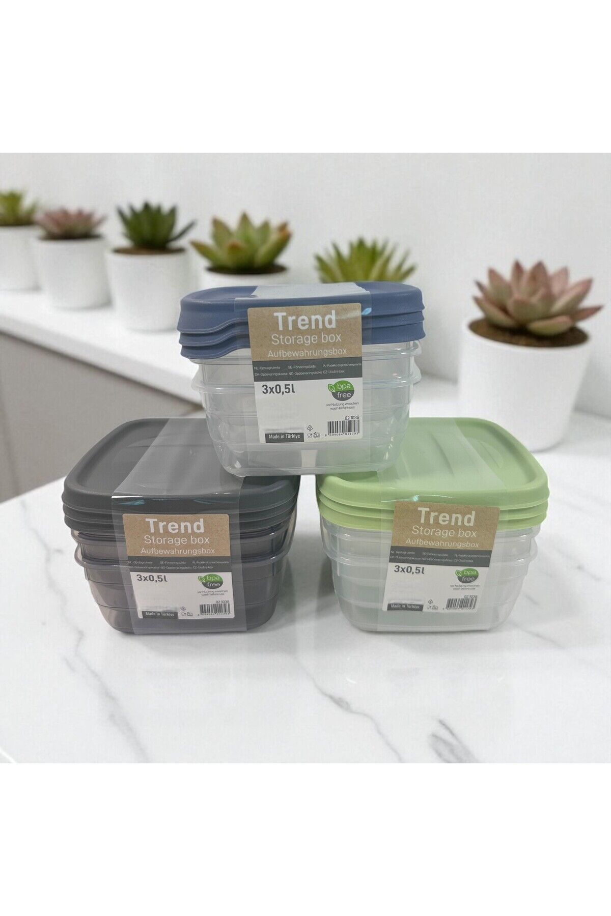 Kare Trend Saklama Kabı Seti 3 x 500 ml Setli