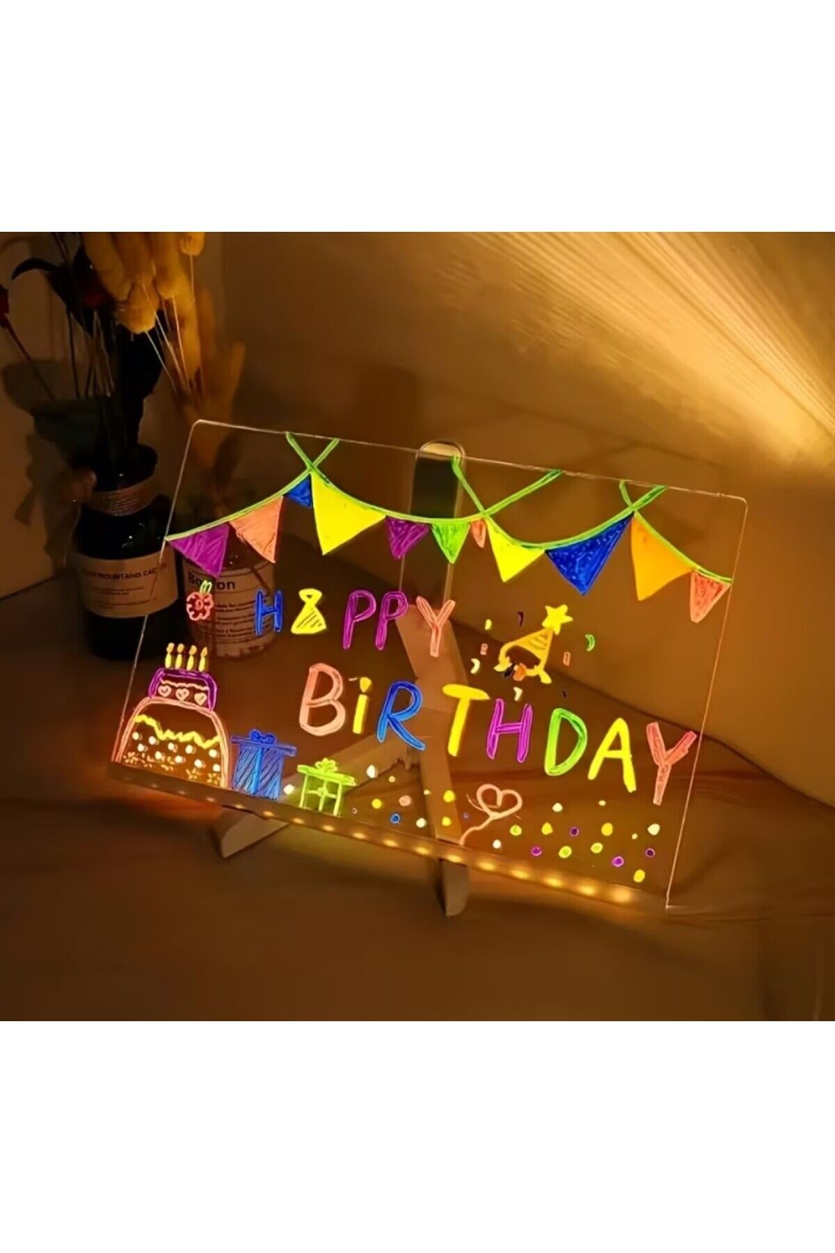 Led Işıklı Kendiliğinden Renkli Fosforlu Kalemli Dikdörtgen Pleksi (Akrilik) Yazı Panosu 20X30