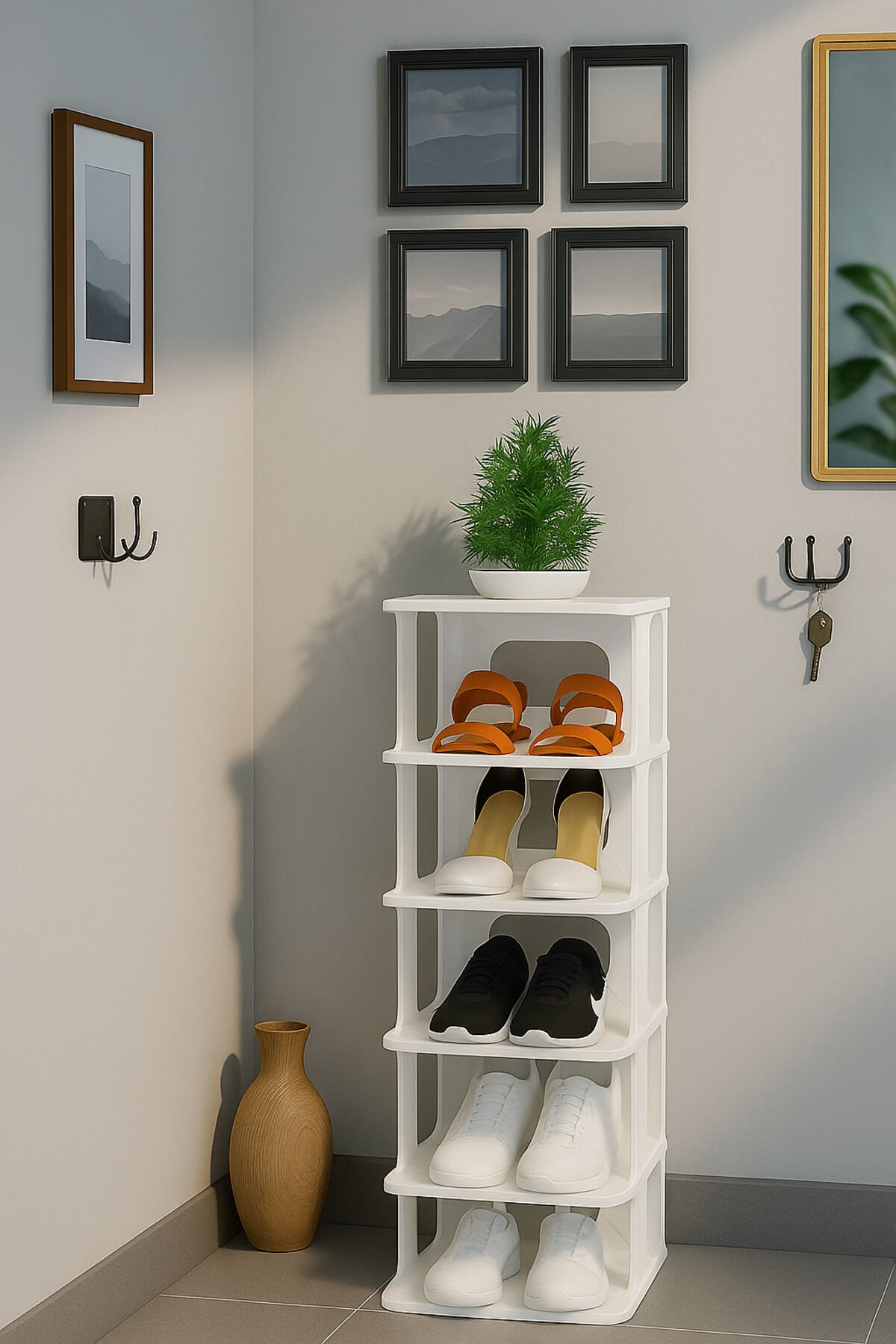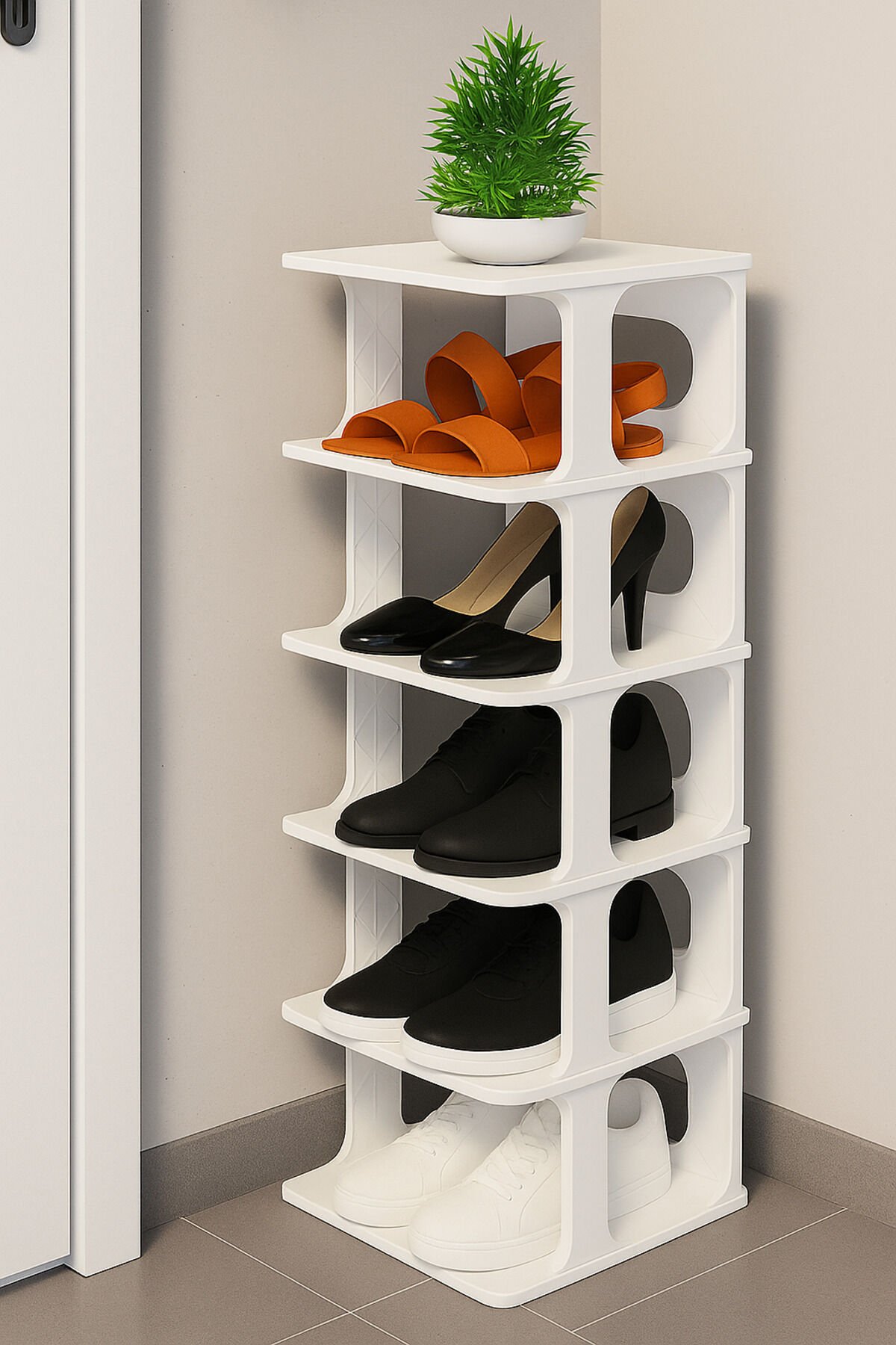 Lüks Ayakkabılık Düzenleyici Organizer Portatif 5 Katlı Çok Katmanlı Ayakkabı Rafı Beyaz