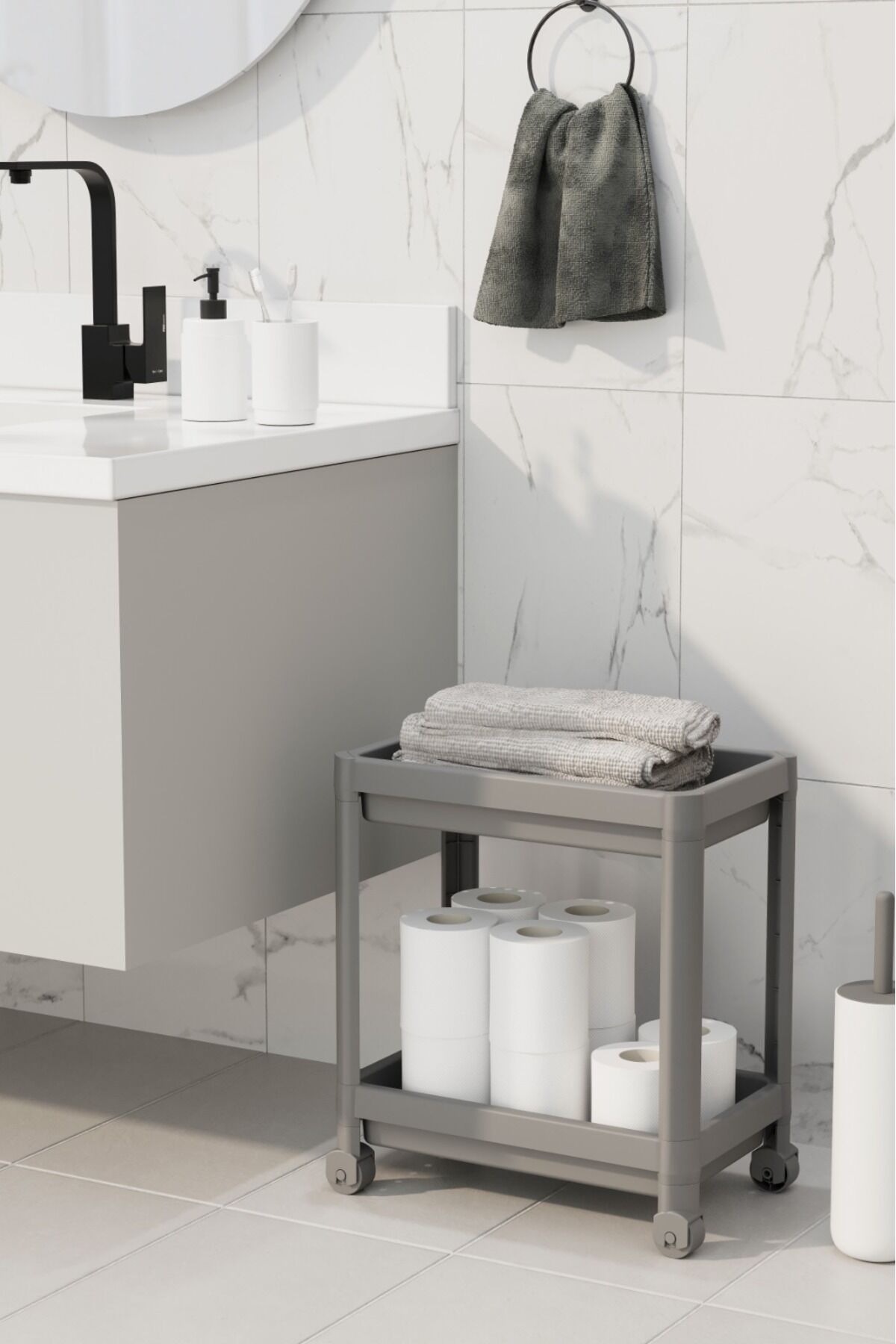 Maja Beyaz 2 Katllı Tekerlekli Banyo Rafı Mutfak Dolabı Düzenleyici Tezgah Altı Organizer