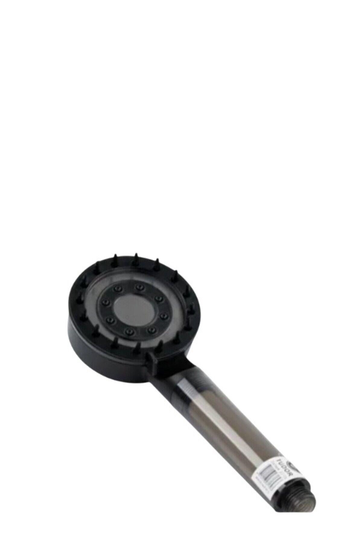 Masajlı Filtreli Siyah Duş Başlığı +Kendiliğinden Yapışkanlı Mafsal (Askı) + 150 cm Örgülü Hortum