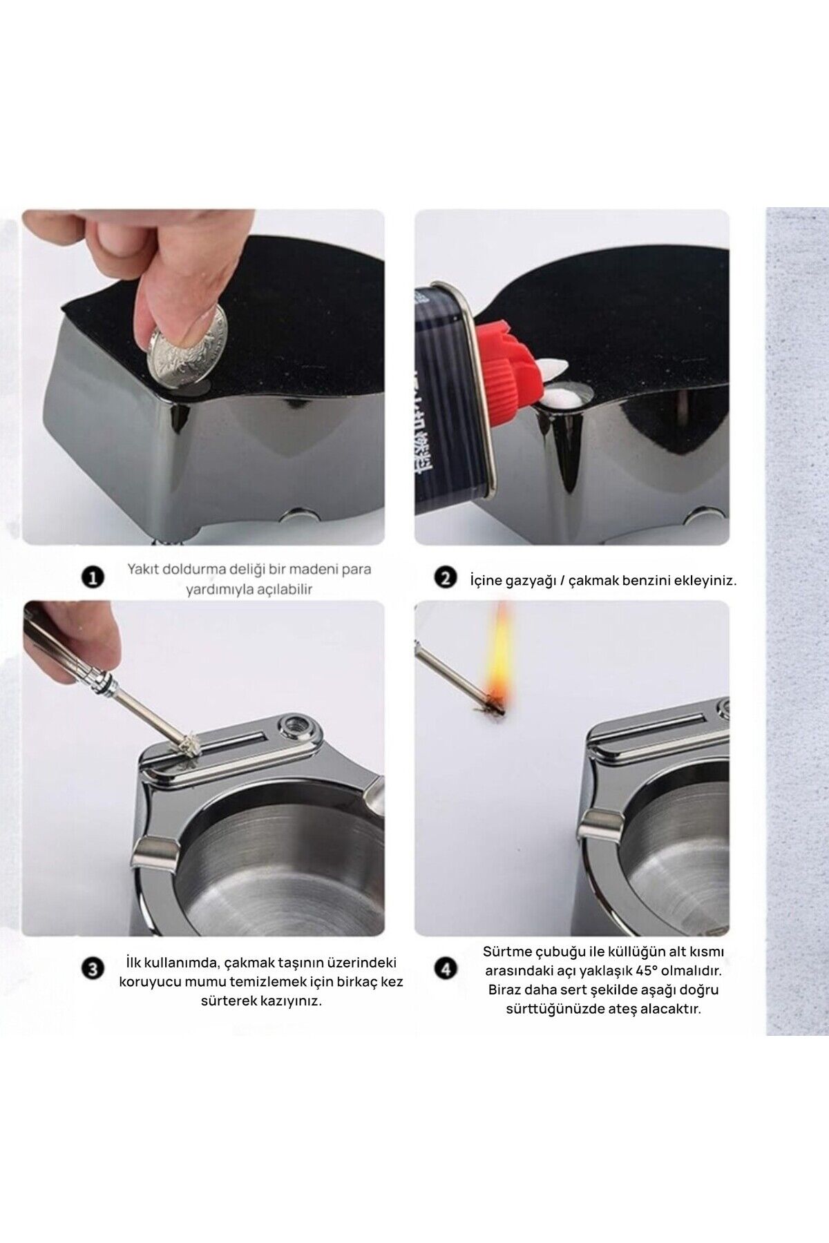- Nostaljik tasarımıyla dikkat çeken bu metal küllük, hem şık hem de kullanışlı bir aksesuardır.; - Rüzgar geçirmez yapısı sayesinde külün etrafa savrulmasını önler ve temiz bir kullanım sağlar.; - Metal kibrit çakmağı, rüzgarlı ortamlarda bile güvenilir bir şekilde ateş yakmanızı sağlar.; - Çakmak benzini dahildir, böylece ürünü hemen kullanmaya başlayabilirsiniz.; - Dayanıklı metal malzemesi ile uzun ömürlü kullanım sunar.;
