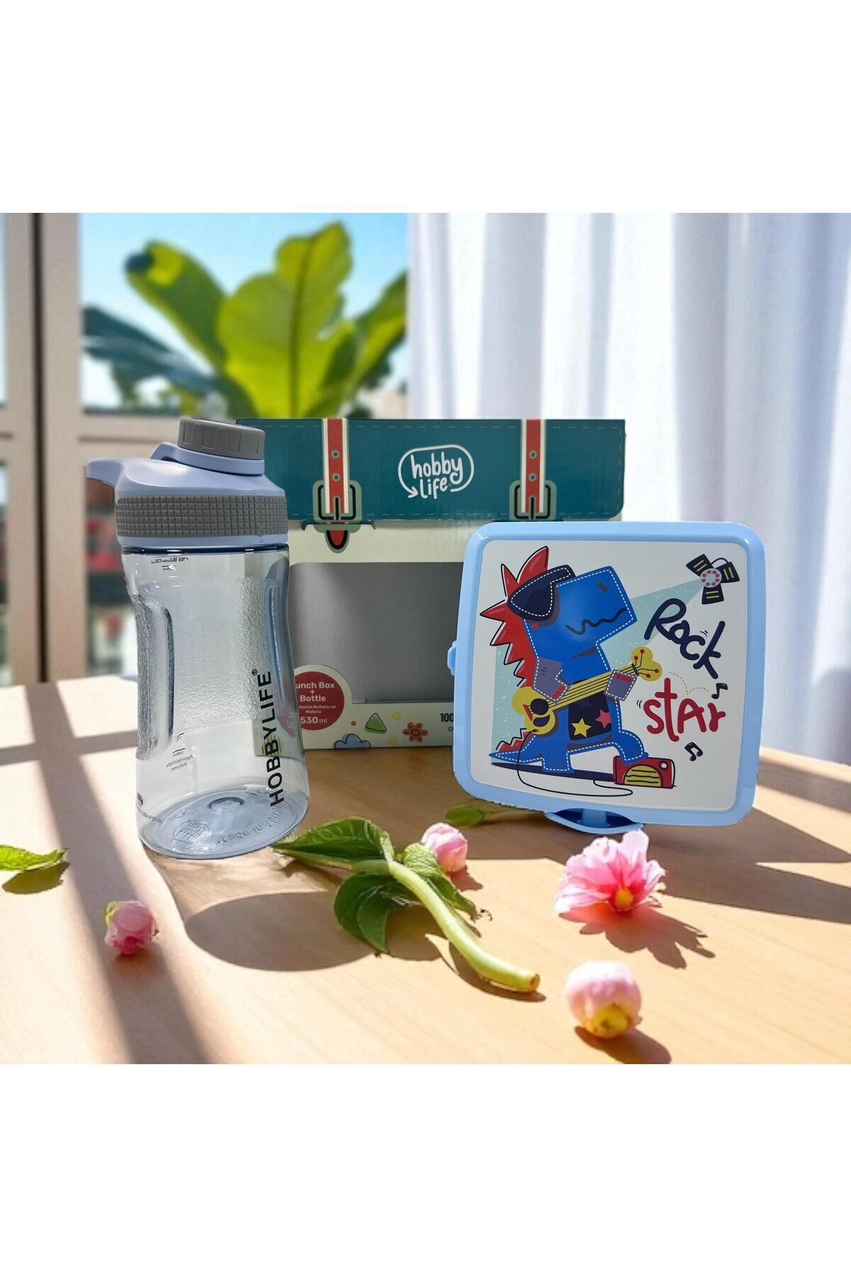 Okul Beslenme Seti: Su Matarası (530ML) ve Desenli Beslenme Kutusu