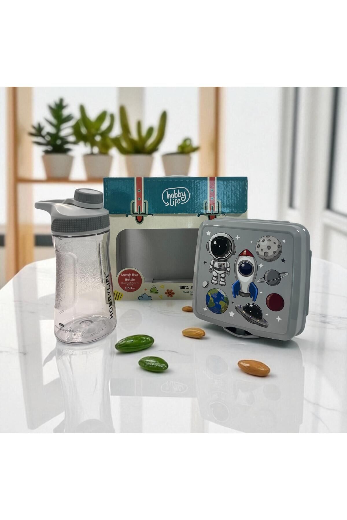 Okul Beslenme Seti: Su Matarası (530ML) ve Desenli Beslenme Kutusu (5PP Gıda İçin Güvenilir Plastik)