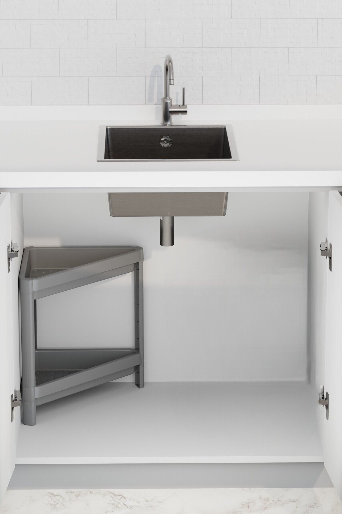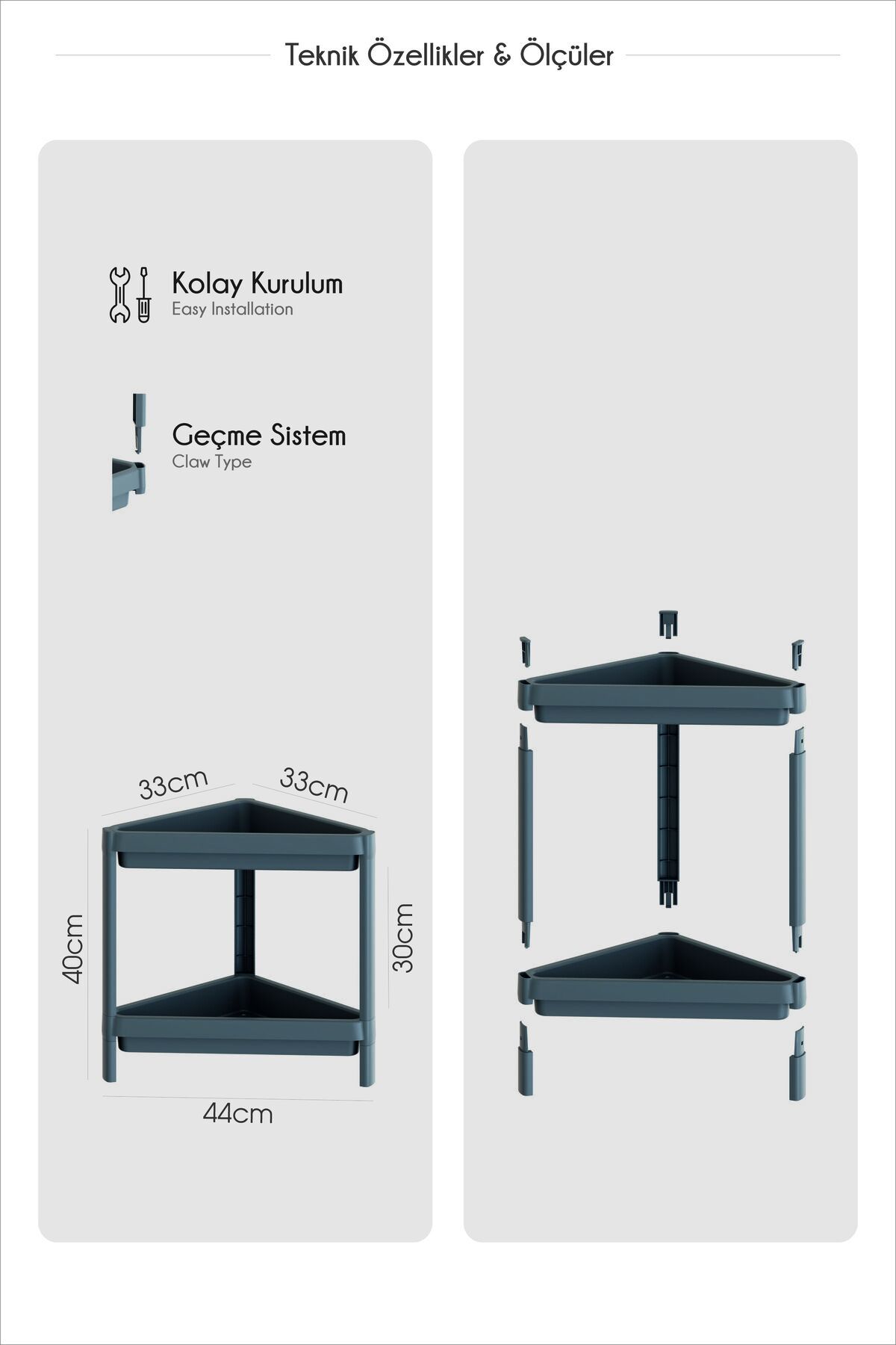 OMAŞ 1 Adet 2 Katlı Üçgen Raf Ünitesi – Köşe Alanlar İçin Şık ve Pratik Düzenleyici Köşe Banyo Rafı