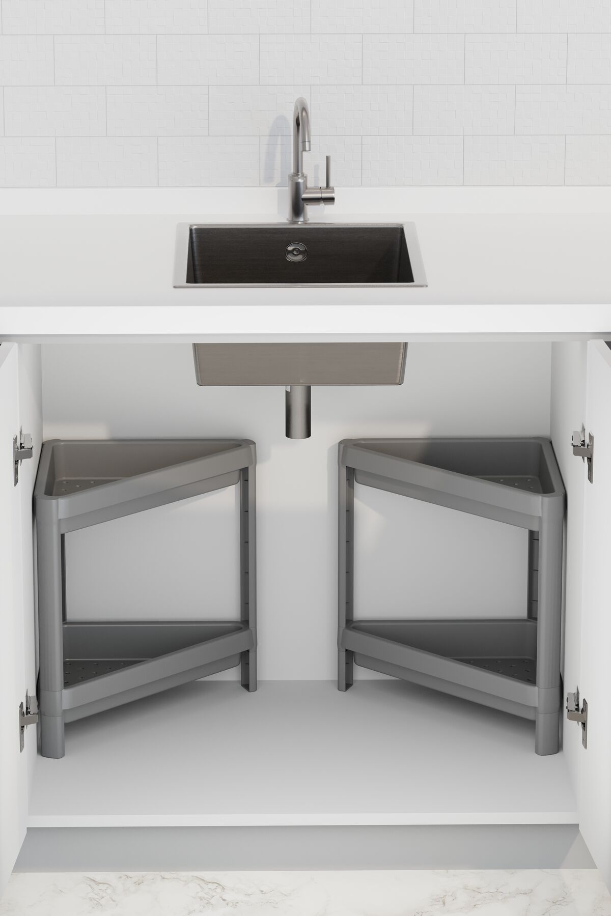 OMAŞ 2 Adet 2 Katlı Üçgen Raf Ünitesi – Köşe Alanlar İçin Şık ve Pratik Düzenleyici Köşe Banyo Rafı