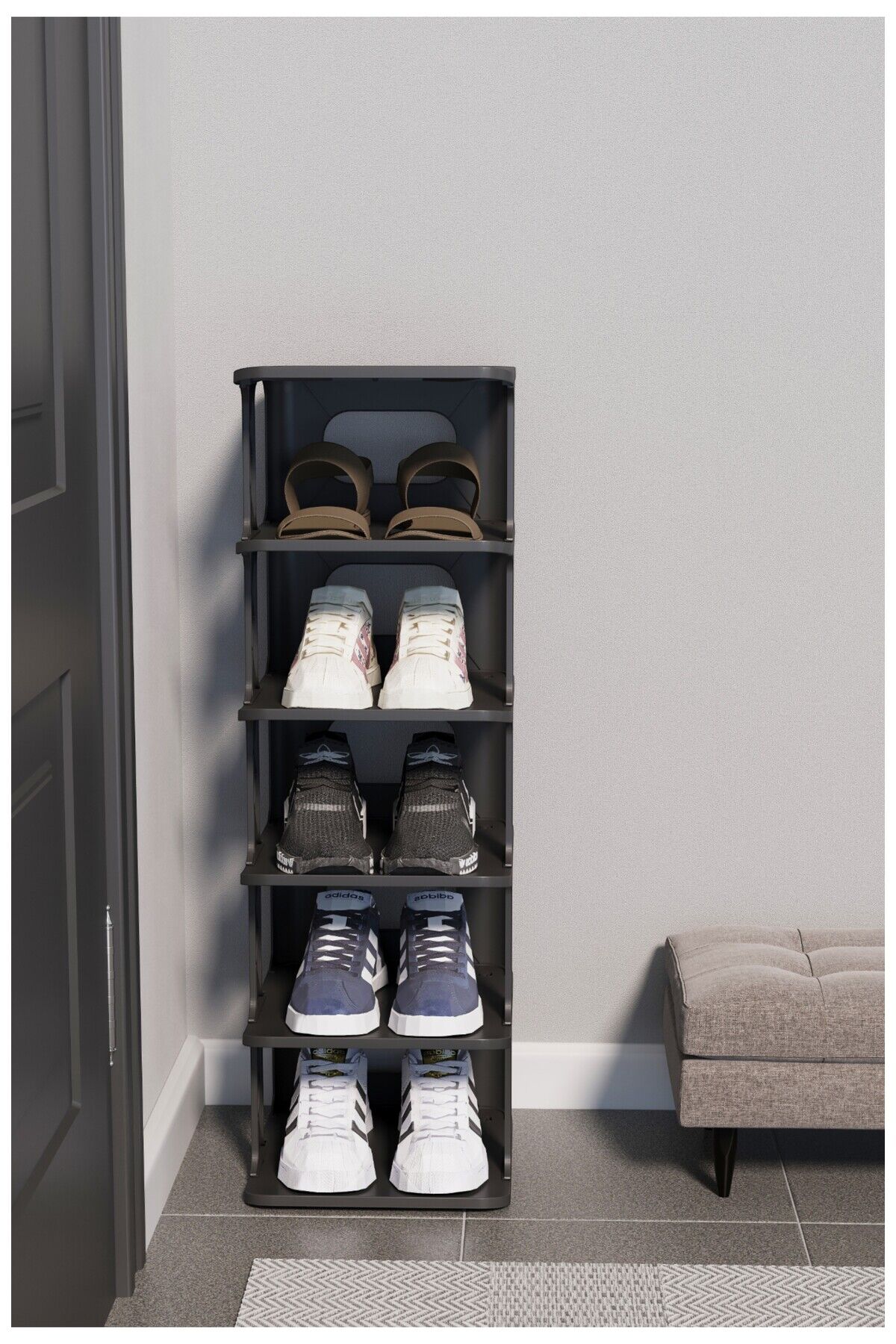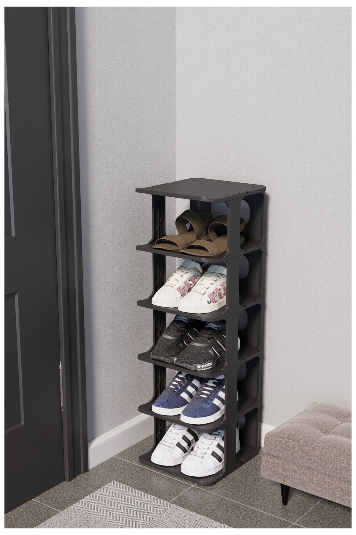 OMAS Lüks 5 Katlı Ayakkabılık Düzenleyici Organizer – Portatif ve Şık Tasarım Siyah
