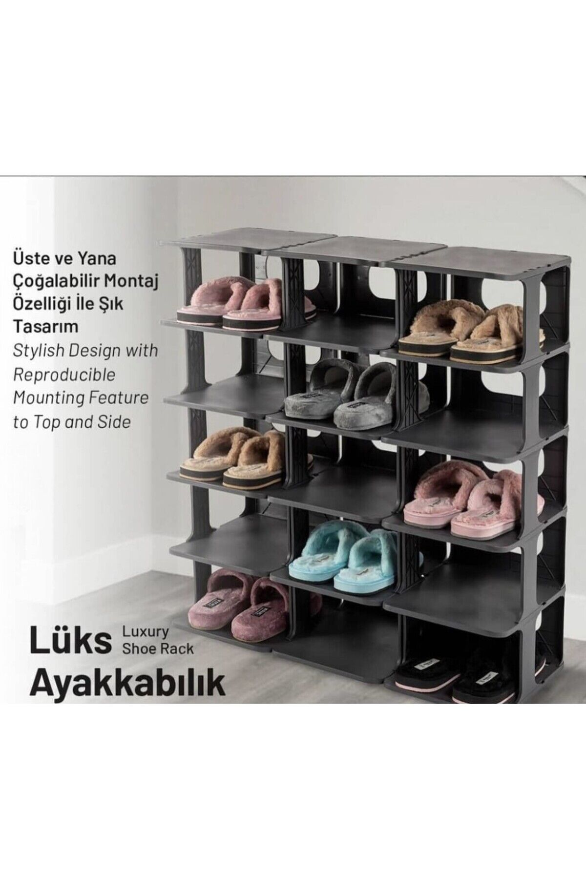 - Modern tasarımı ile evinizin dekorasyonuna şık bir dokunuş ekler.; - Dayanıklı plastik materyalden üretilmiş olup, uzun ömürlü kullanım sunar.; - 27 cm derinliği sayesinde ayakkabılarınız için geniş saklama alanı sağlar.; - 76 cm yüksekliği ile kolay erişim imkanı sunar ve ayakkabılarınızı rahatça görebilirsiniz.; - 23 cm genişliği, farklı boyutlardaki ayakkabılarınızı rahatça yerleştirebilmeniz için idealdir.; - Türkiye menşeli olup, yerel üretimle kaliteyi evinize taşır.;