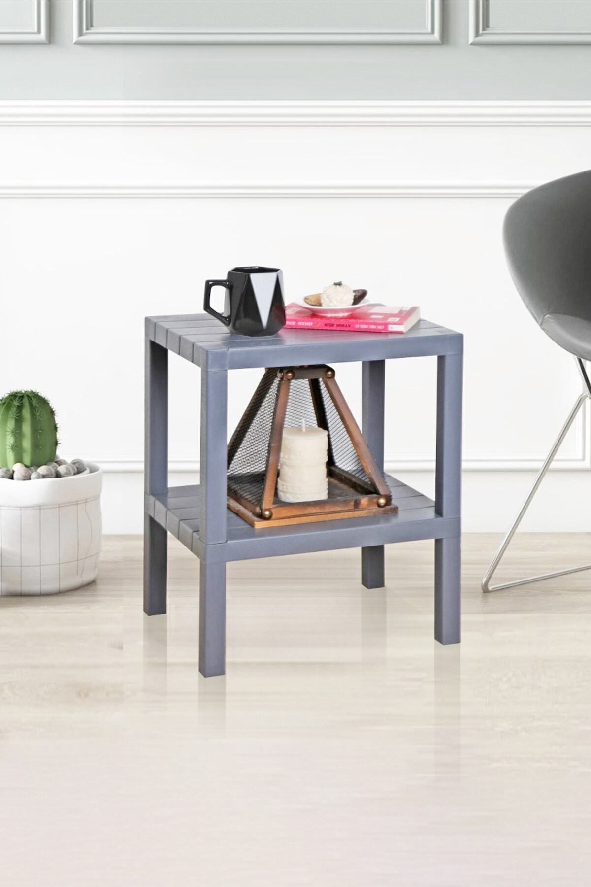 Ombeg 2 Katlı Plastik Bahçe Sehpası, Gazetelikli Masa, Havuz, Plaj, Balkon, Banyo, Mutfak Sehpası