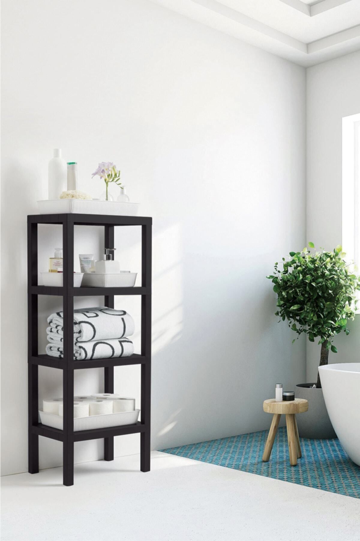 Ombeg 4 Katlı Modüler Banyo Rafı Mutfak Balkon Salon Bahçe Rafı Kitaplık Düzenleyici Organizer