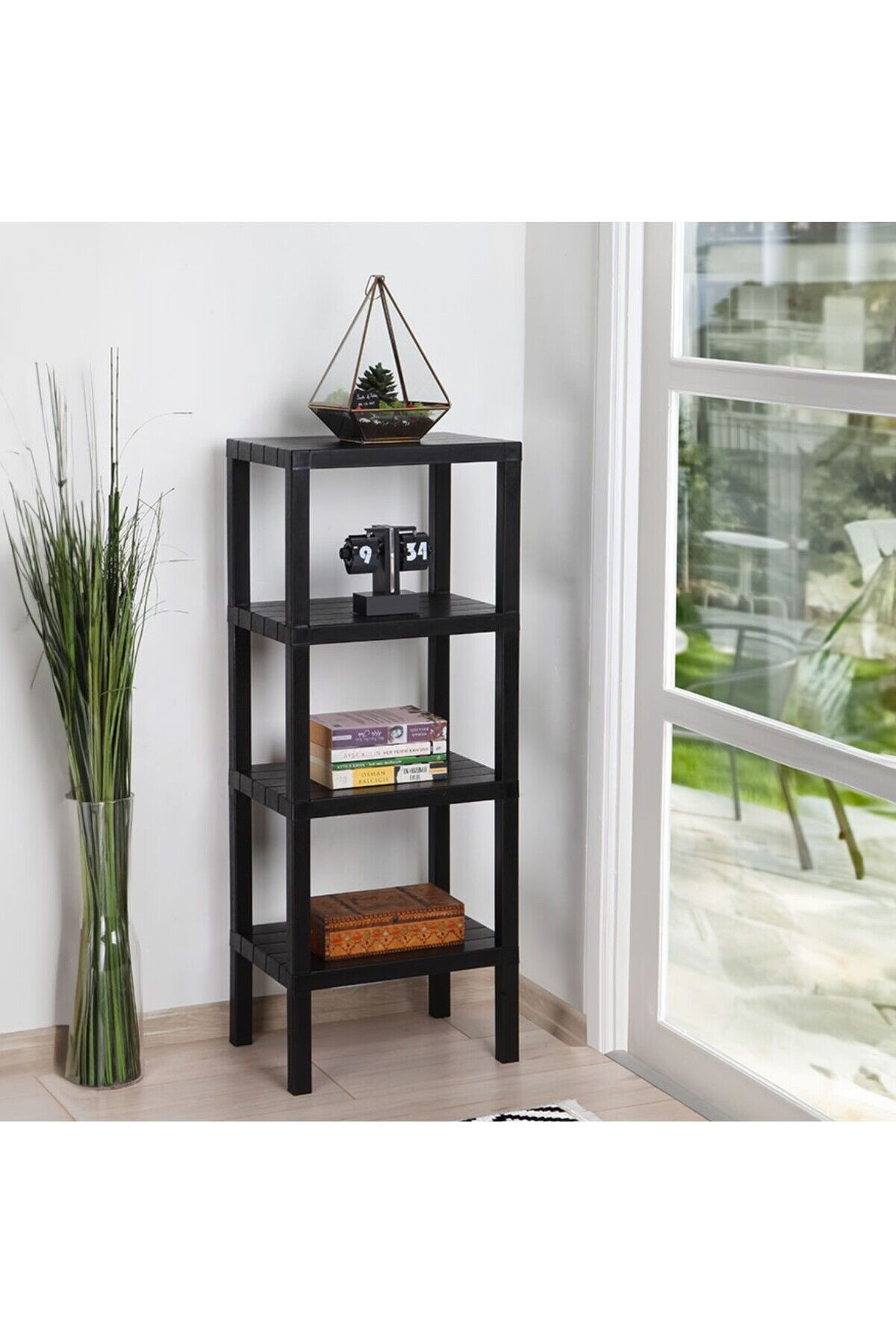 OMBEG 4 Katlı Modüler Raf – Banyo, Mutfak, Balkon, Salon ve Bahçe DüzenleyiciOMBEG modüler 4 katlı raf, şık tasarımı ve işlevsel yapısıyla evinizin her alanında düzeni sağlar.; 29 cm derinlik, 38 cm genişlik ve 100 cm yükseklik ölçüleriyle ideal boyutlarda tasarlanmıştır; hem yerden tasarruf sağlar hem de geniş depolama alanı sunar.;