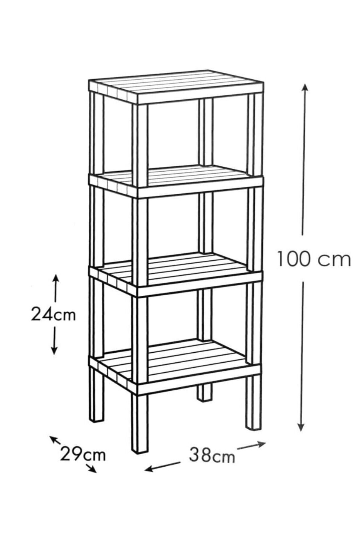 OMBEG 4 Katlı Modüler Raf – Banyo, Mutfak, Balkon, Salon ve Bahçe DüzenleyiciOMBEG modüler 4 katlı raf, şık tasarımı ve işlevsel yapısıyla evinizin her alanında düzeni sağlar.; 29 cm derinlik, 38 cm genişlik ve 100 cm yükseklik ölçüleriyle ideal boyutlarda tasarlanmıştır; hem yerden tasarruf sağlar hem de geniş depolama alanı sunar.;