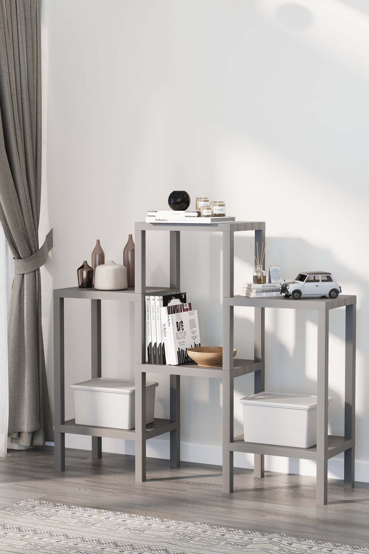 Dayanıklı plastik malzeme kullanılarak üretilmiş, uzun ömürlü ve sağlam bir yapıya sahiptir; Altı adet rafı ile geniş depolama alanı sunar, evinizdeki eşyalarınızı düzenli bir şekilde yerleştirmenize olanak tanır; Kolay temizlenebilir yüzeyi sayesinde hijyenik bir kullanım sağlar ve bakımı pratiktir; Modern tasarımı ile mekanınıza şık bir görünüm katar ve dekorasyonunuza estetik bir dokunuş ekler;