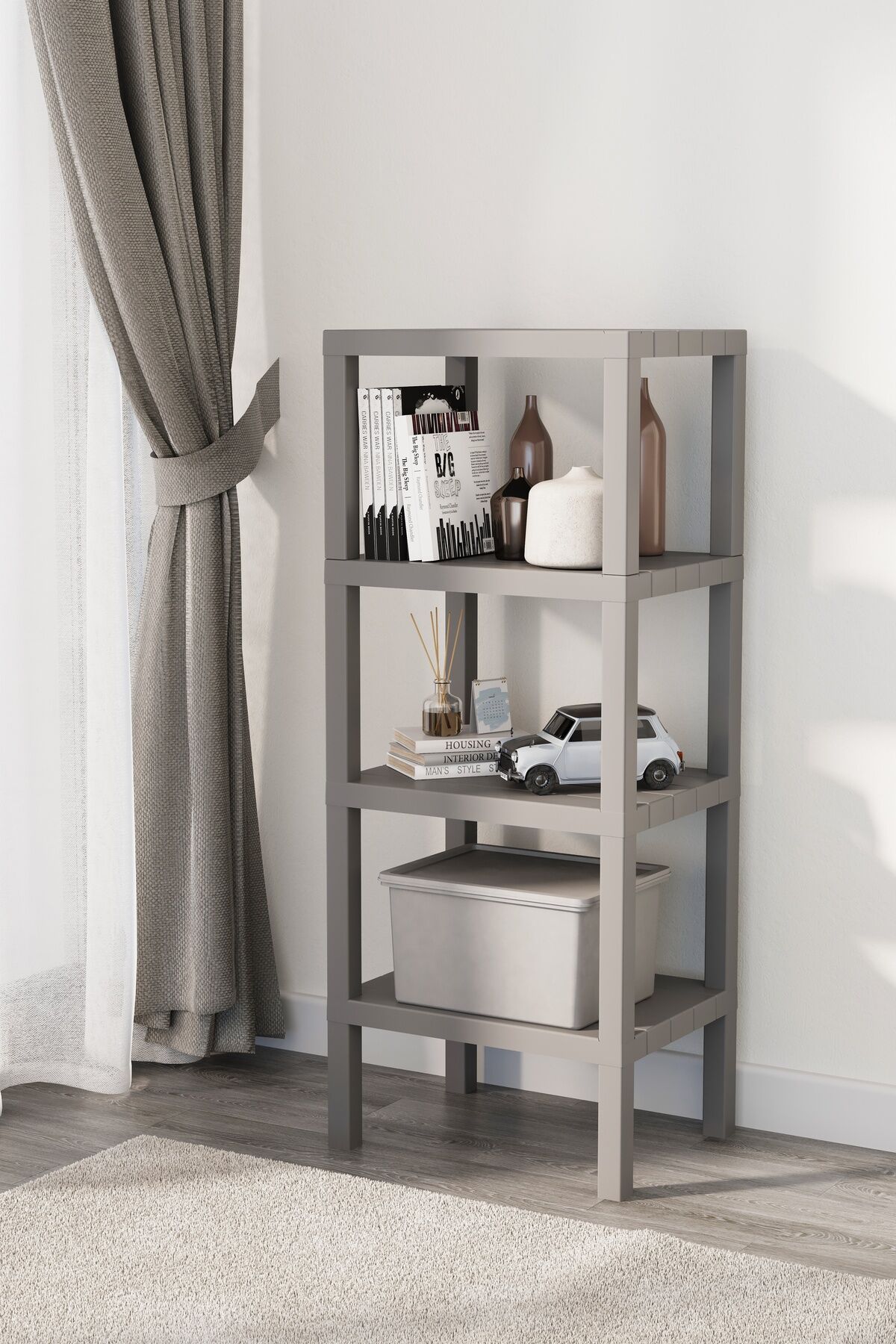 Ombeg Renkli 4 Katlı Raf Ünitesi Gri