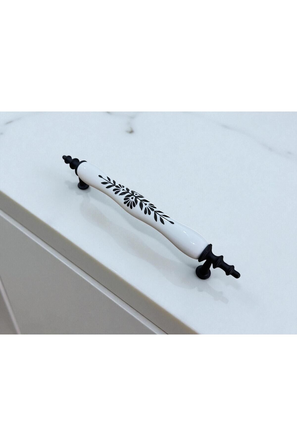 Porselen Kulp – Siyah Yapraklı Floral Desen – 128mm (12.8 cm)Porselen geçen tüm ürünlerimiz %100 Porselen Kulp'tur.; Mobilyalarınıza zarif bir dokunuş katın! Şık siyah yaprak desenli porselen kulp, klasik ve modern tarzı bir arada sunar.;