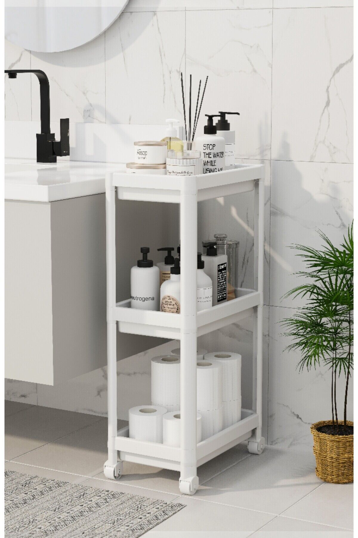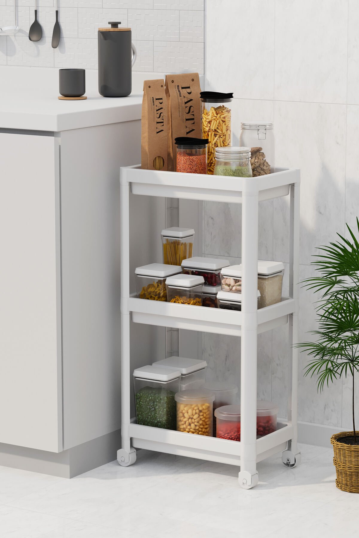 PEGGY 3 Katlı Tekerlekli Raf Ünitesi –Çok Amaçlı Mutfak Erzak Banyo Raf Ünitesi Tekerlekli Organizer