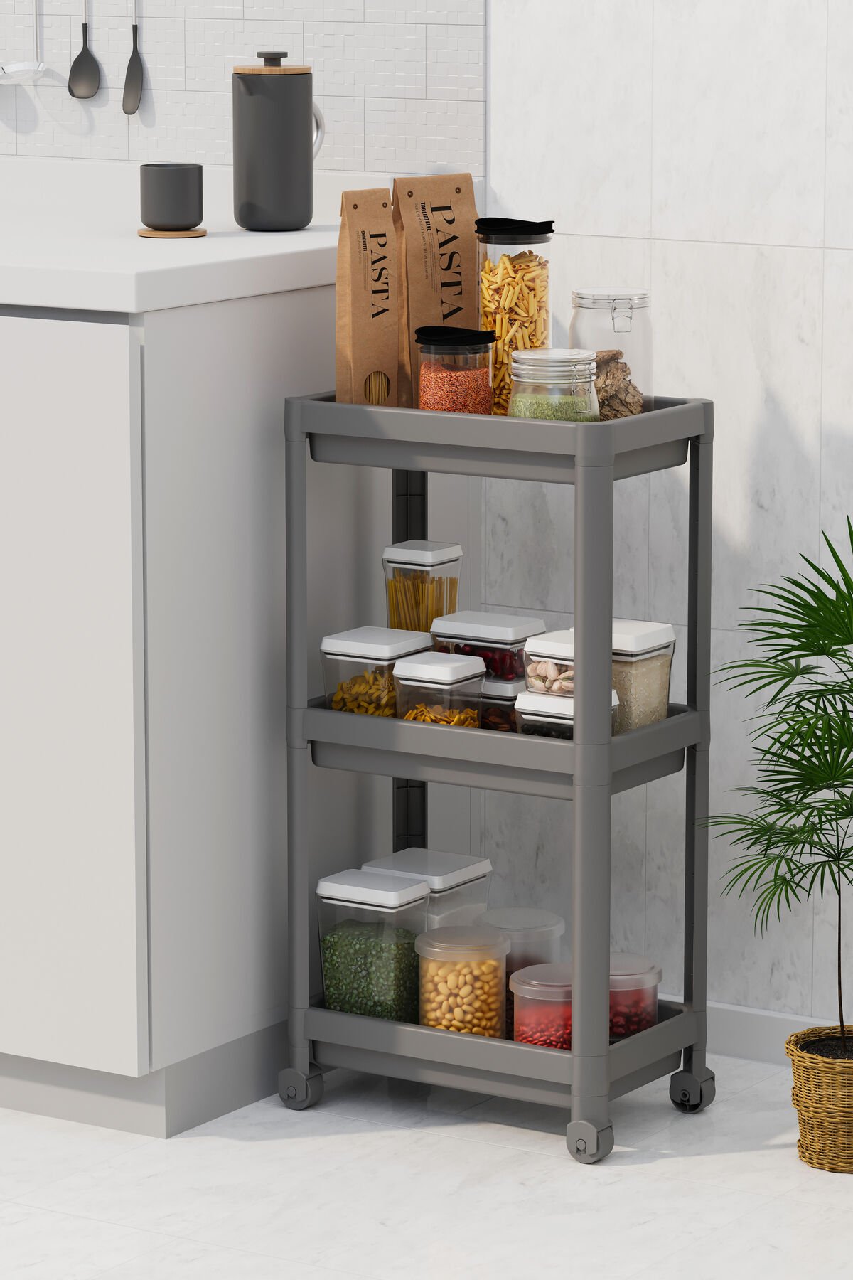 PEGGY 3 Katlı Tekerlekli Raf Ünitesi –Çok Amaçlı Mutfak Erzak Banyo Raf Ünitesi Tekerlekli Organizer