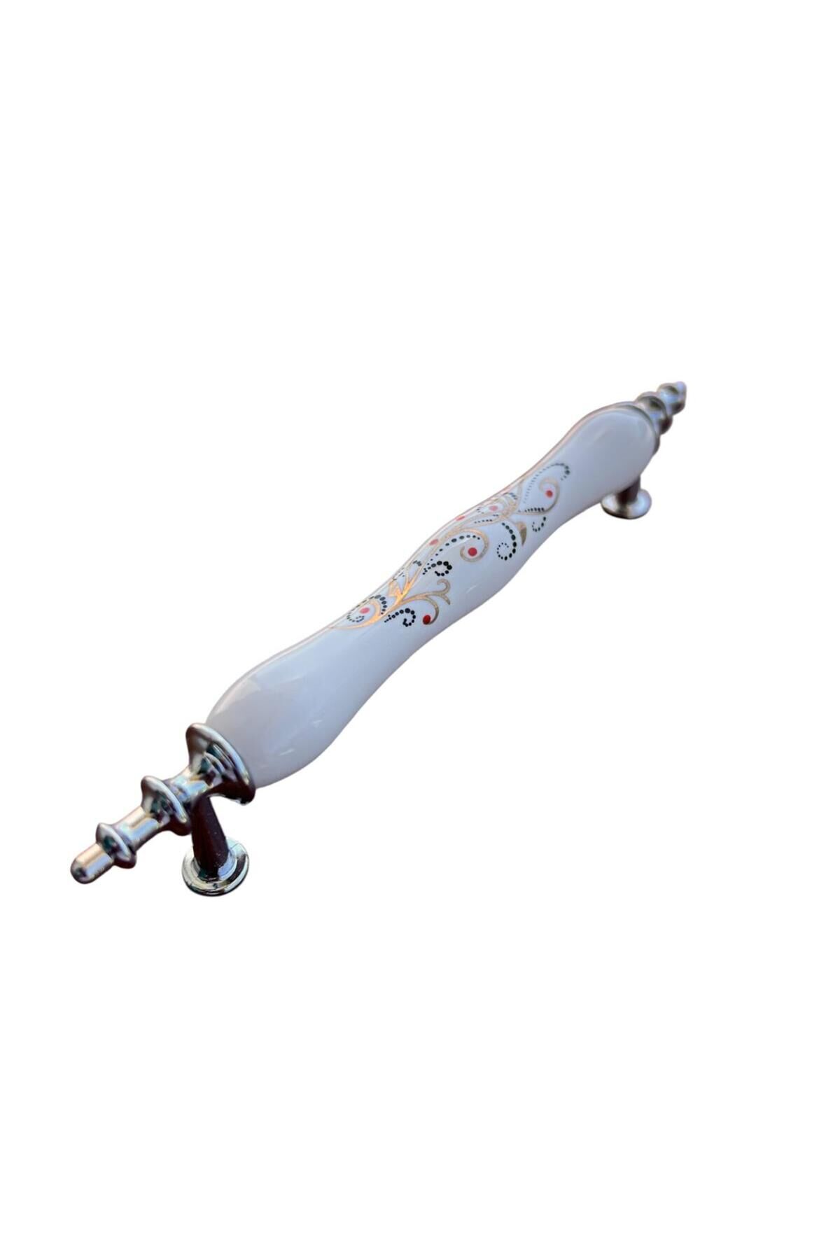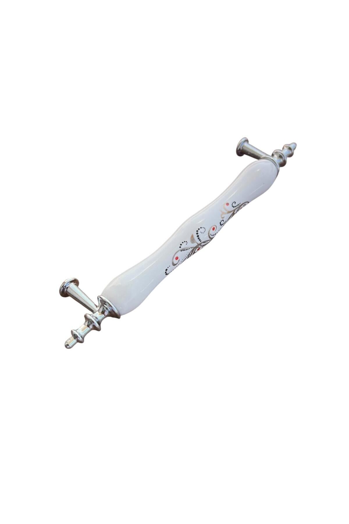 - Zarif Çin Gülü deseniyle süslenmiş, her türlü mobilyaya şıklık katan porselen kulplar.; - Çift delikli tasarımı sayesinde, kolayca monte edilebilir ve mevcut çekmece kapaklarına uyum sağlar.; - Yerli üretim olup, kaliteli malzemeler kullanılarak üretilmiştir; dayanıklılığı ve estetiği ile öne çıkar.; - Modern ve geleneksel dekorasyon stilleriyle uyumlu, evinizdeki mobilyalara sofistike bir dokunuş ekler.