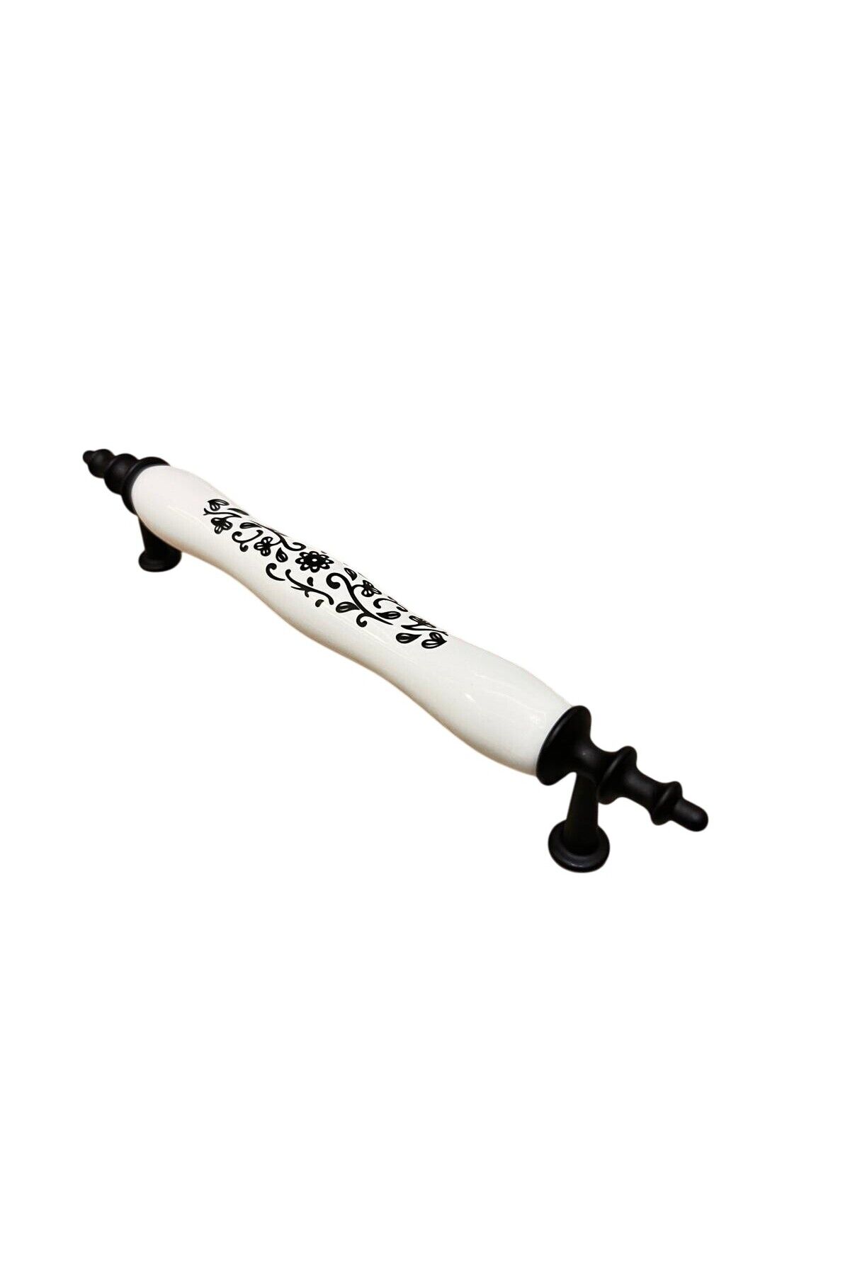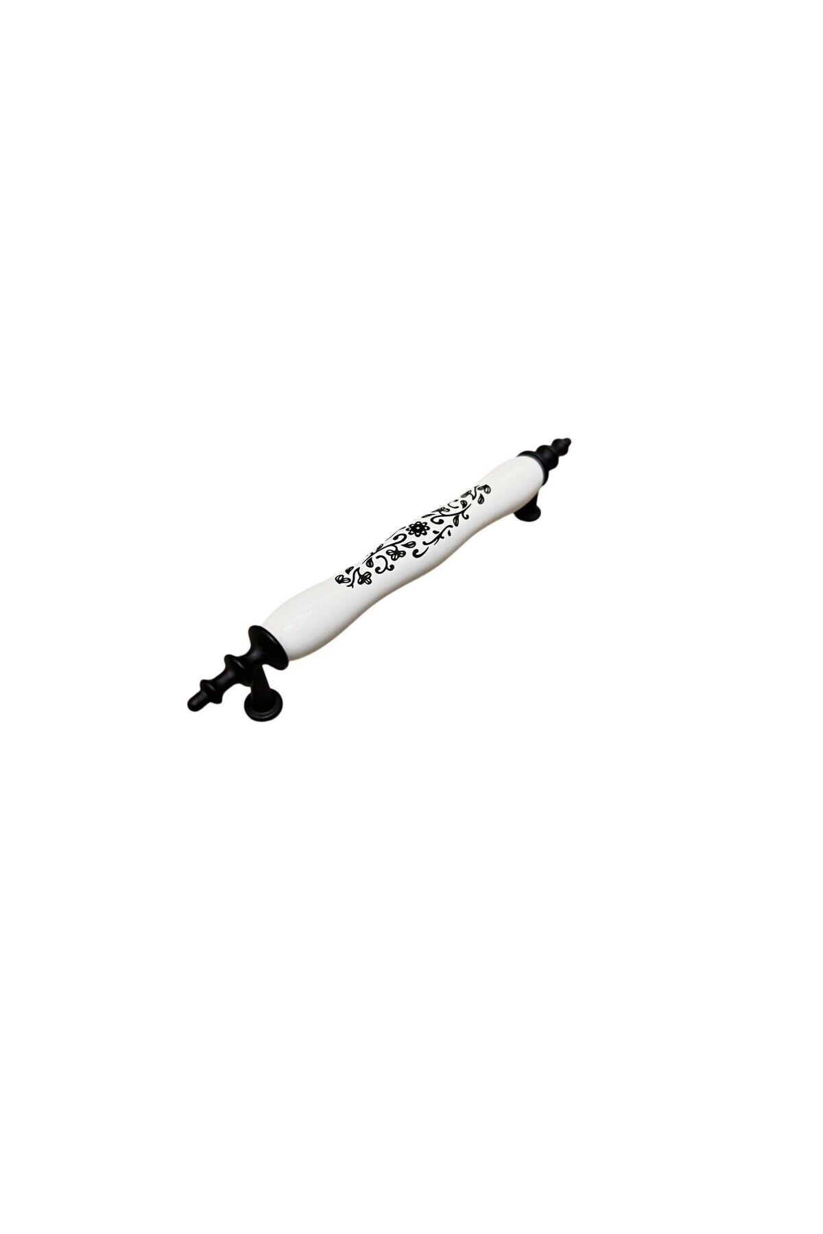 Porselen Kulp Siyah Sarmaşık Desenli 128mm (12.8cm) Ölçüsünde Mobilya Çekmece Kapak Kulbu