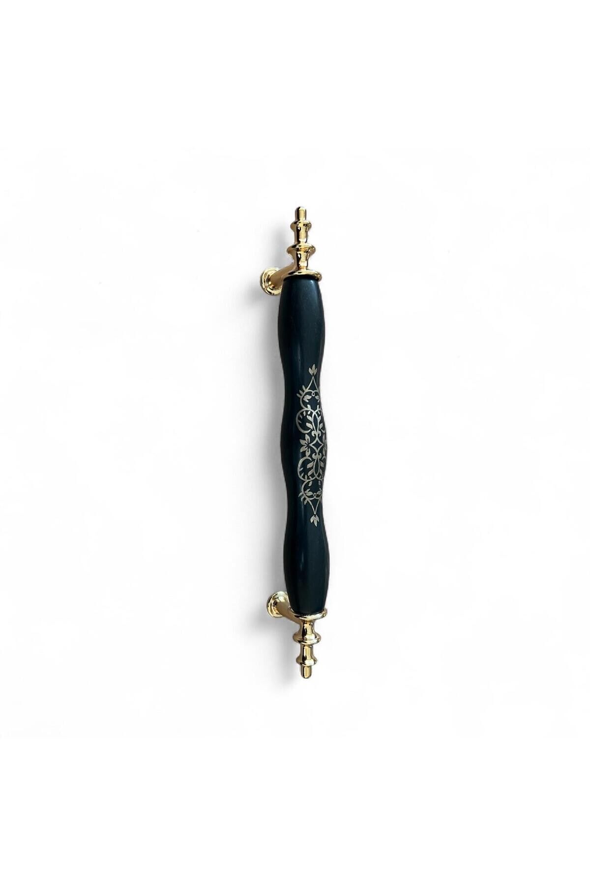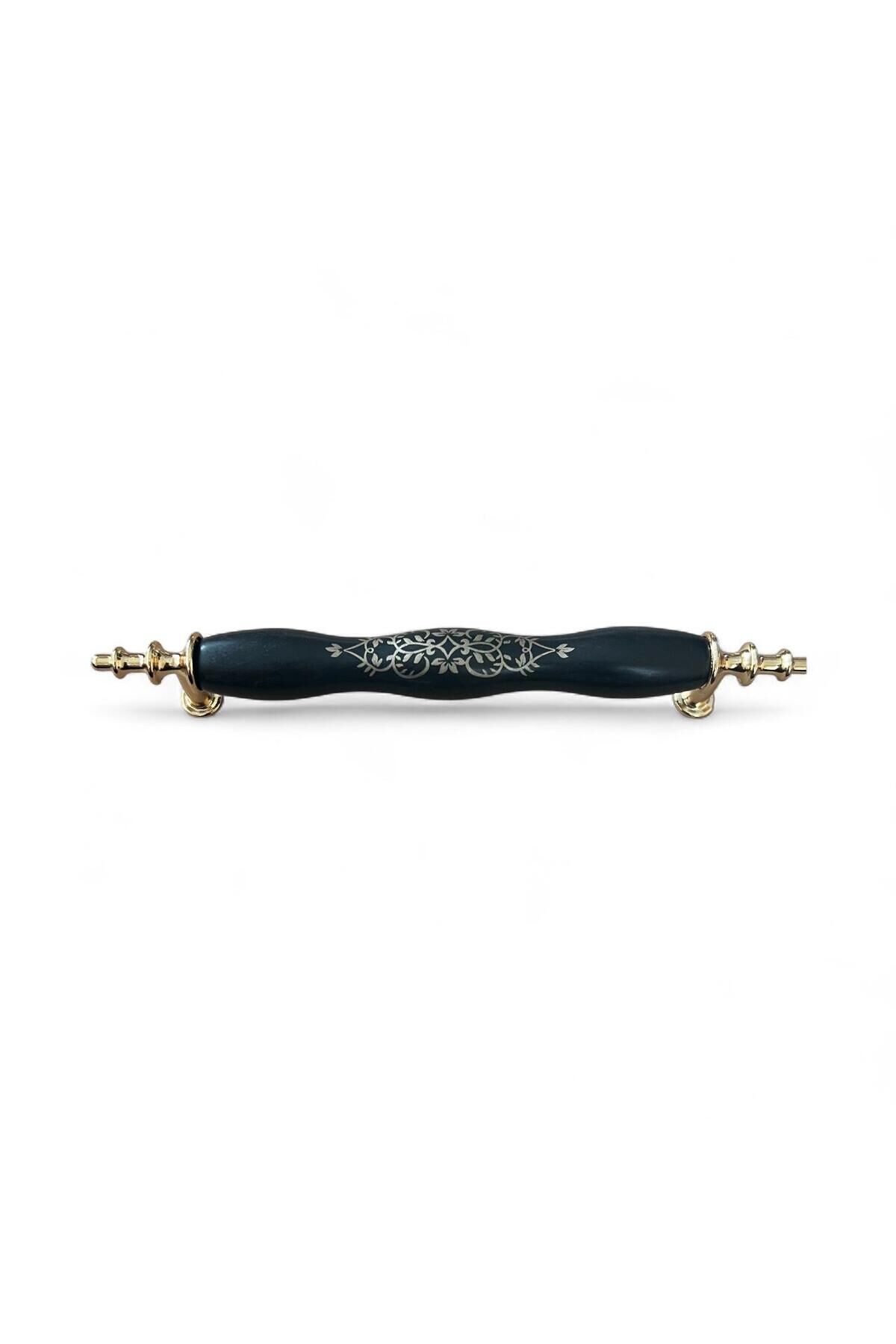 Siyah Polimer Gövde Altın Taç Desenli 128mm (12.8cm) Mobilya Çekmece Kapak Kulbu