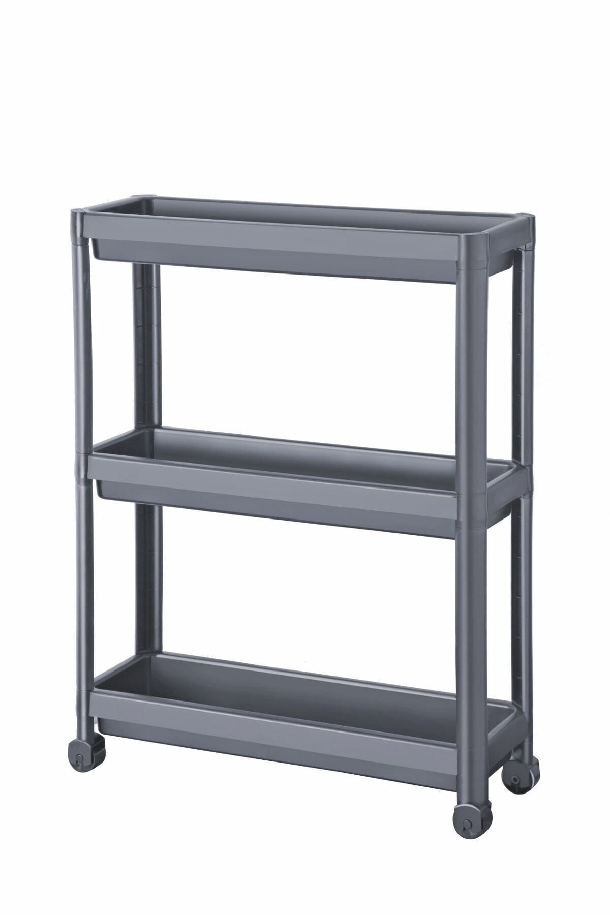 Tekerlekli Raf Ünitesi 3 Katlı Gri Banyo Rafı Mutfak Rafı Servis Sehpası Organizer Ebatlar Genişlik:54 cm Derinlik:18 cm Yükseklik:71 cm Raflar Arası Mesafe:30cm ; Herhangi bir alet kullanmadan parçaları bir araya getirerek servis arabasını hızlı ve kolay bir şekilde monte edebilirsiniz. ; Sağlam yapısı ve dört tekerleği sayesinde mutfak arabasını taşıyabilir ve istediğiniz her yerde kullanabilirsiniz. Hatta küçük boyutları nedeniyle dar alanlarda da rahatça kullanılabilir. ; Rafın yüksek kenarları sayesinde şampuan ve saç kreminden banyo süngerine kadar herşey yerinde sabit kalabilir. ; Küçük banyolar için mükemmeldir. ; Malzeme Polipropilen plastik ; En küçük banyolara sığar. Raflarda şampuan şişelerinden, sabun ve küçük eşyalara kadar tüm banyo malzemeleriniz için bol miktarda alan vardır. ; UYARI : Kurulum sırasında tekerlerin yönlerinin kurulum kılavuzunda belirtildiği yönlerde olduğundan emin olunuz. ;