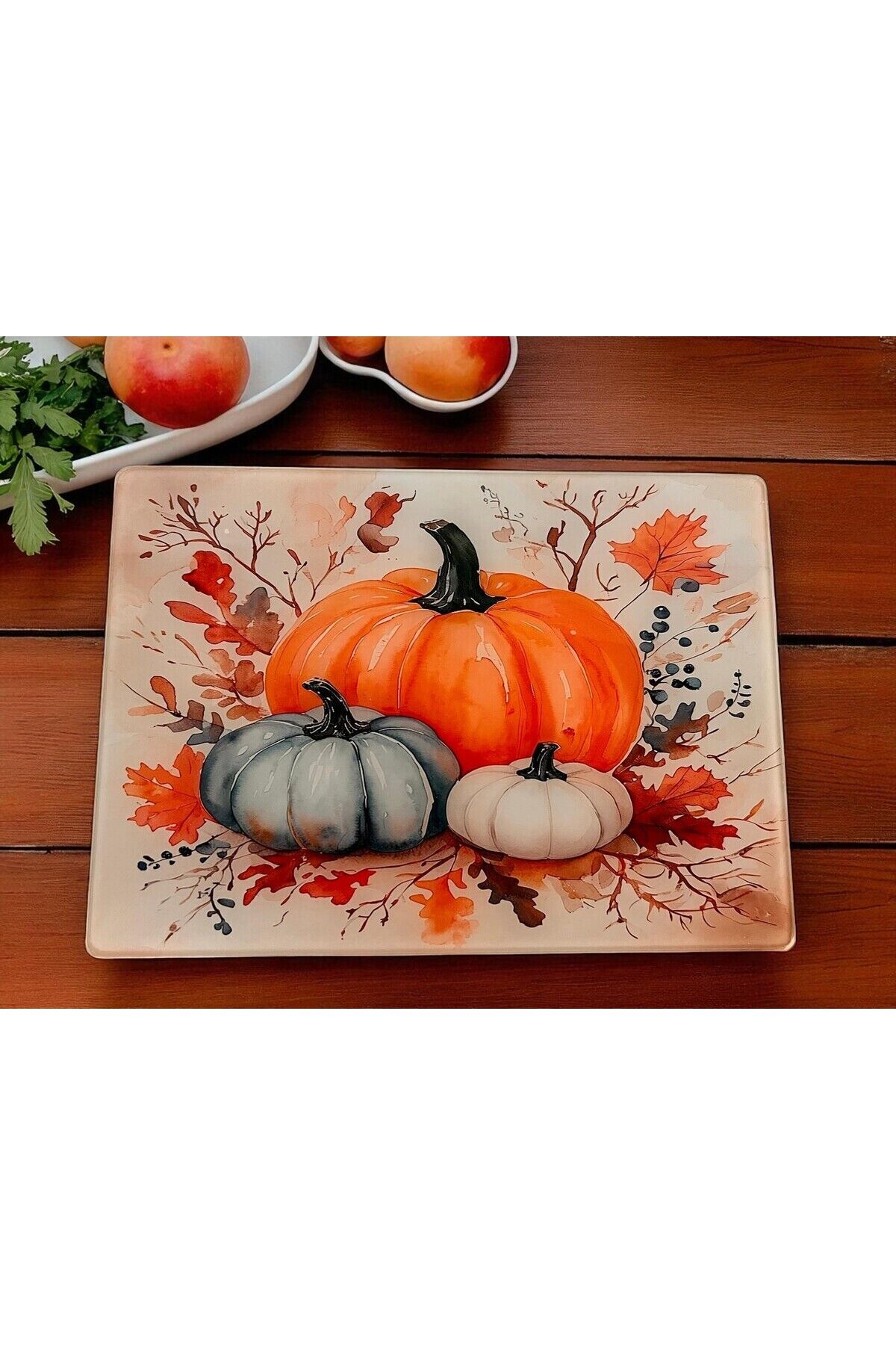 Temperli Cam Sebze Meyve Doğrama Kesme Tahtası + Yedek Silikon Ayak, Kenarları Oval, 25X35CM