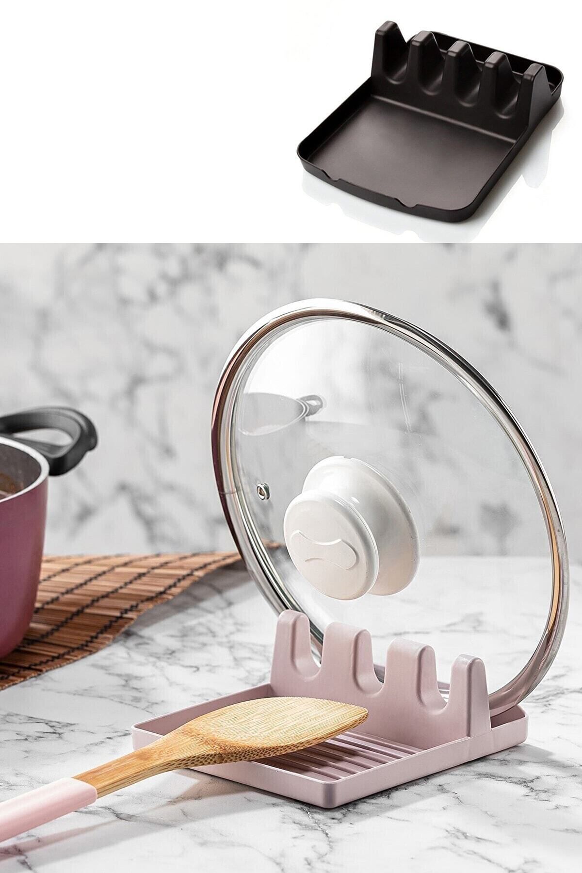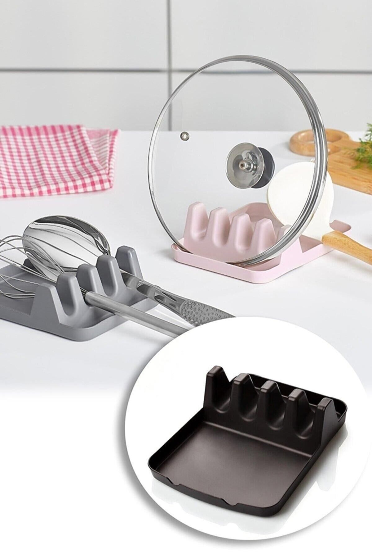 Tencere Kapak Tutucu Ve Kaşıklık - Tencere Kapağı Standı Kirli Kaşıklık Kepçe Altlığı Siyah