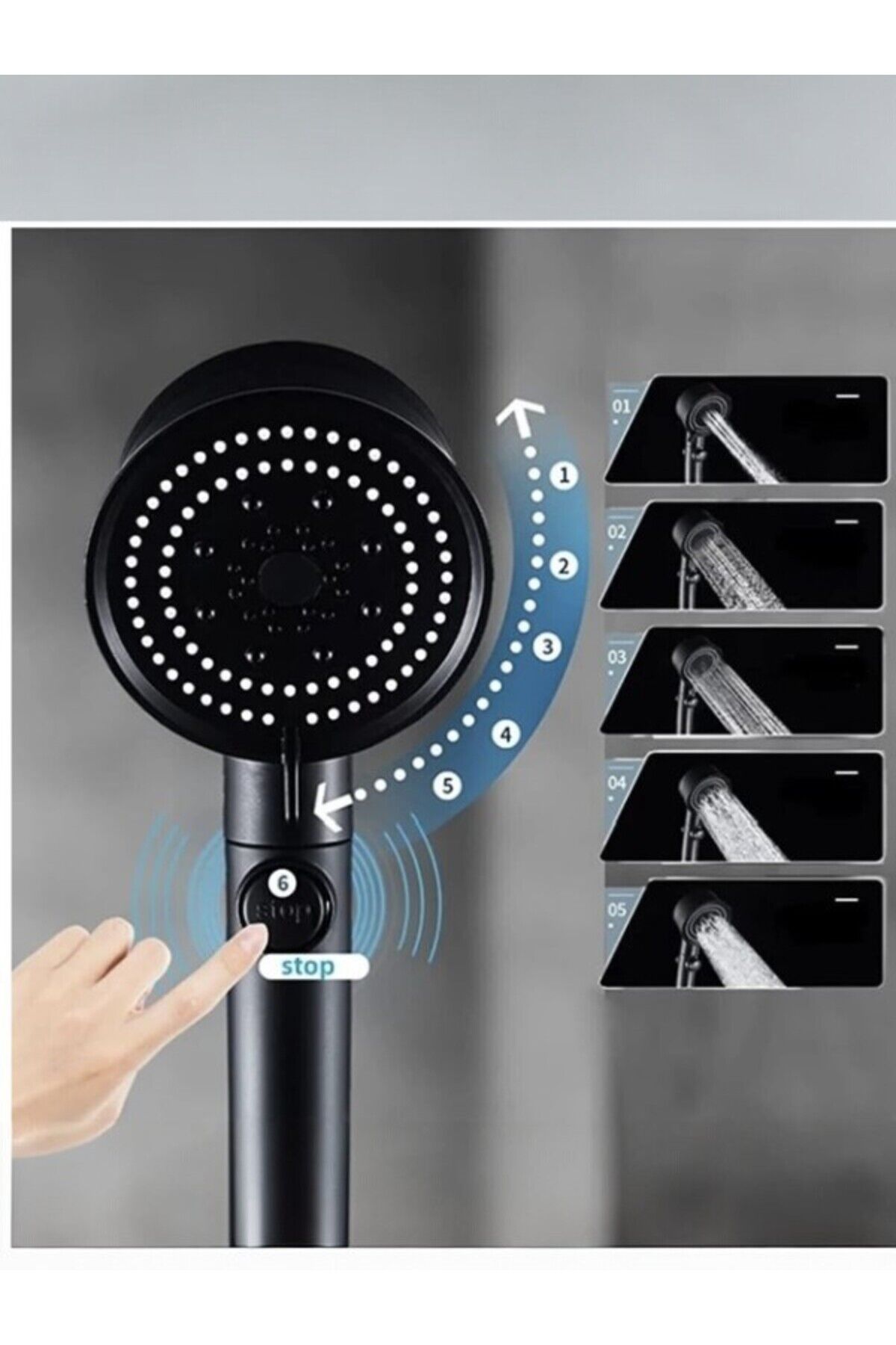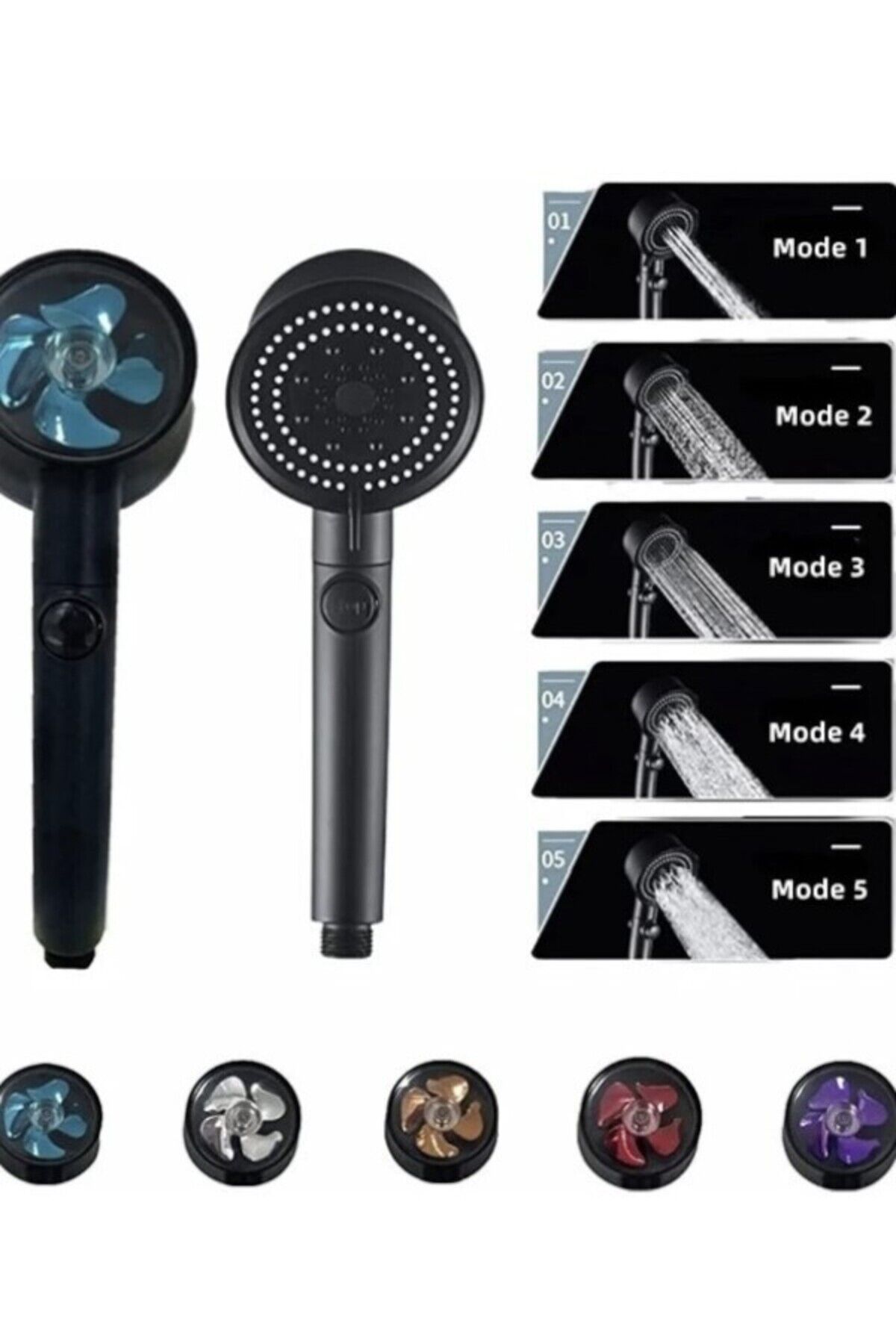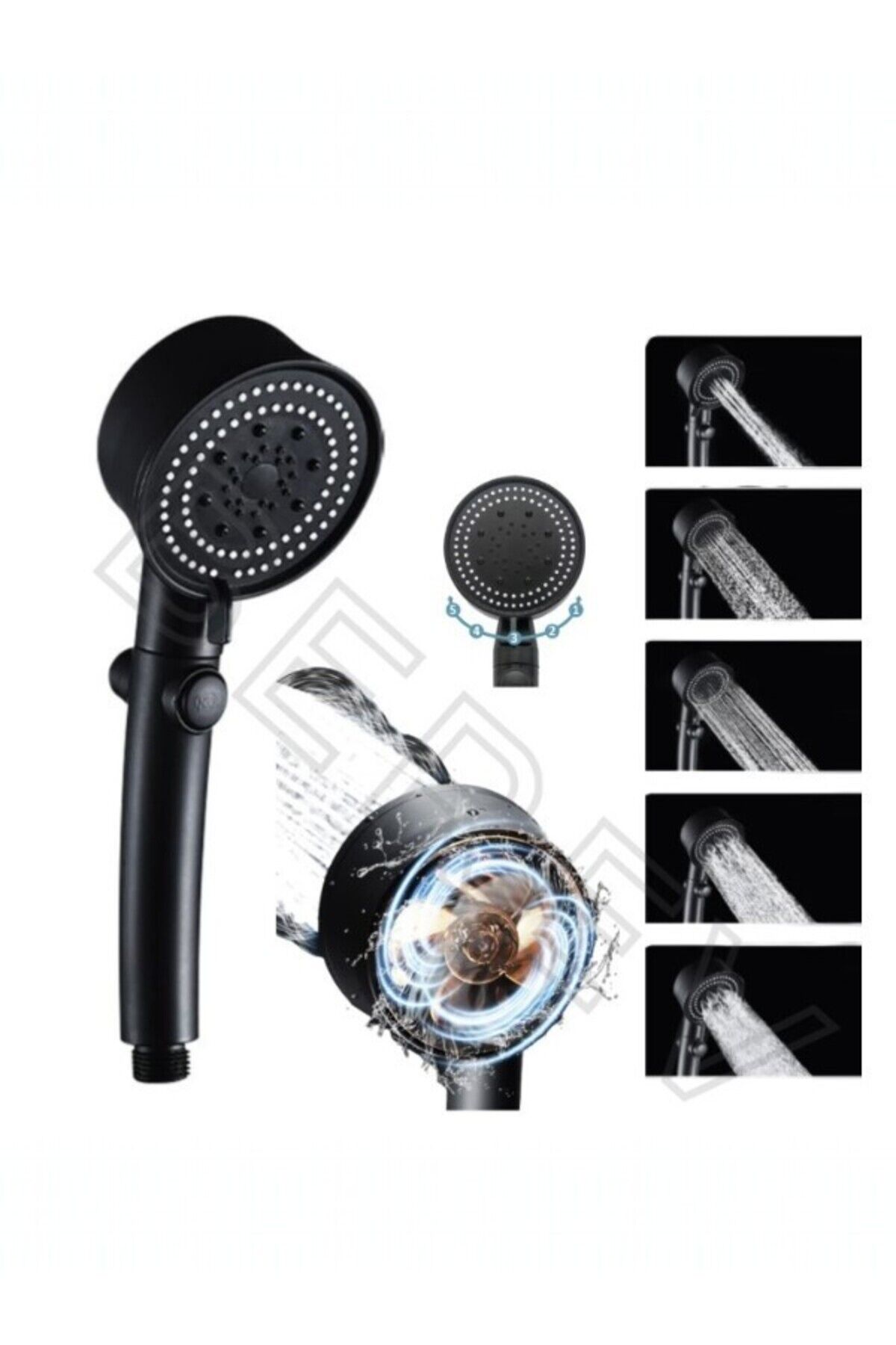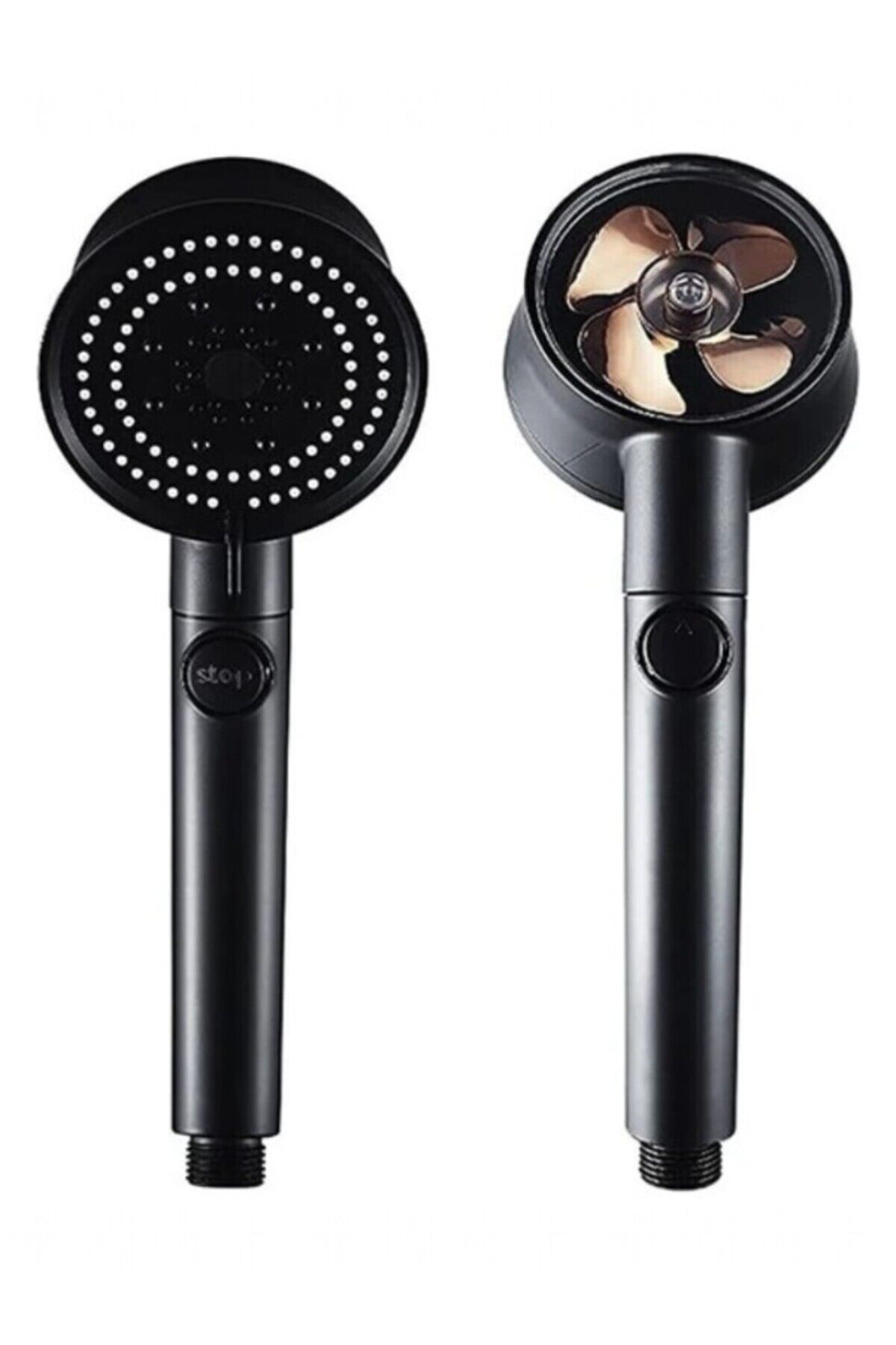 Turbo Fan Pervaneli 5 Fonksiyonlu Star Stop Su Tasarruflu Duş Başlığı Siyah