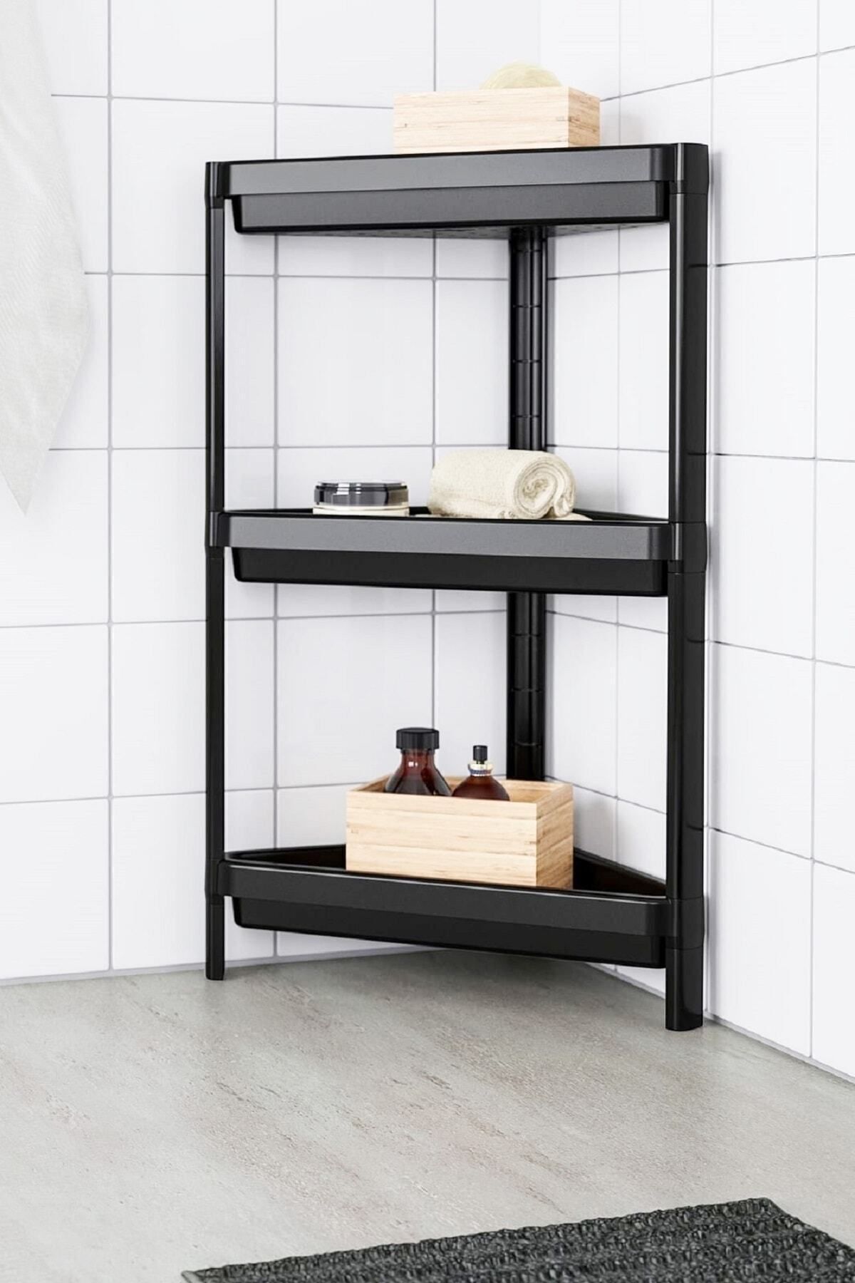 Üçgen Banyo Rafı 3 Katlı Siyah Köşe Banyo Rafı Düzenleyici Organizer
