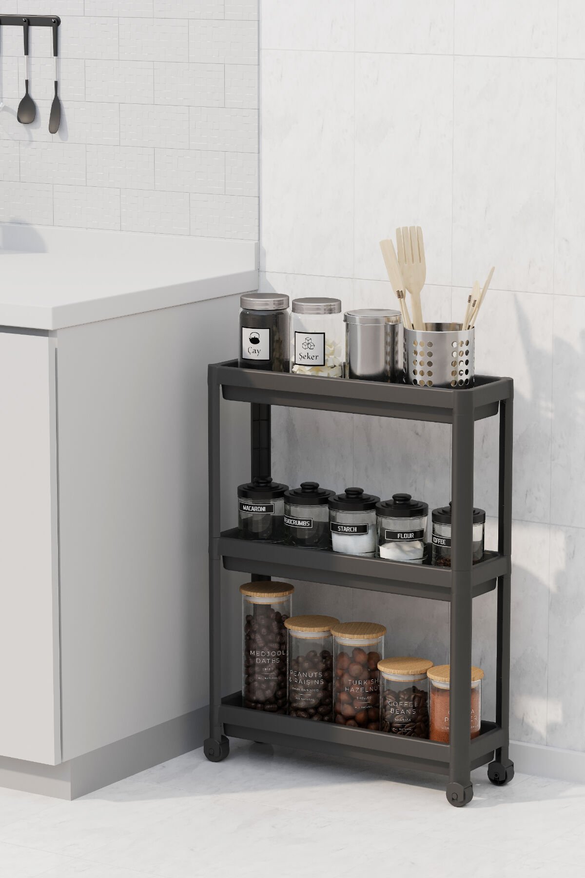 Vesken Çok Amaçlı Siyah 3 Katlı Tekerlekli Dikdörtgen Plastik Banyo Raf Ünitesi evinizin düzenini sağlayacak. Mutfağınızda, kilerinizde, banyonuzda her alanda rahatlıkla kullanabileceğiniz; tekerlek sistemi sayesinde ürünlere rahatlıkla ulaşabileceğiniz ürünü incelemeyi unutmayın! Ürün demontedir. Ürün Ölçüsü; Genişlik - 54 Cm, Derinlik - 18 Cm, Raf Yük Kapasitesi - 13 Kg, Raflar Arası Mesafe - 30 Cm, Toplam Yükseklik - 71 Cm. Ürün Plastiktir. Siyah renk gönderim sağlanmaktadır.